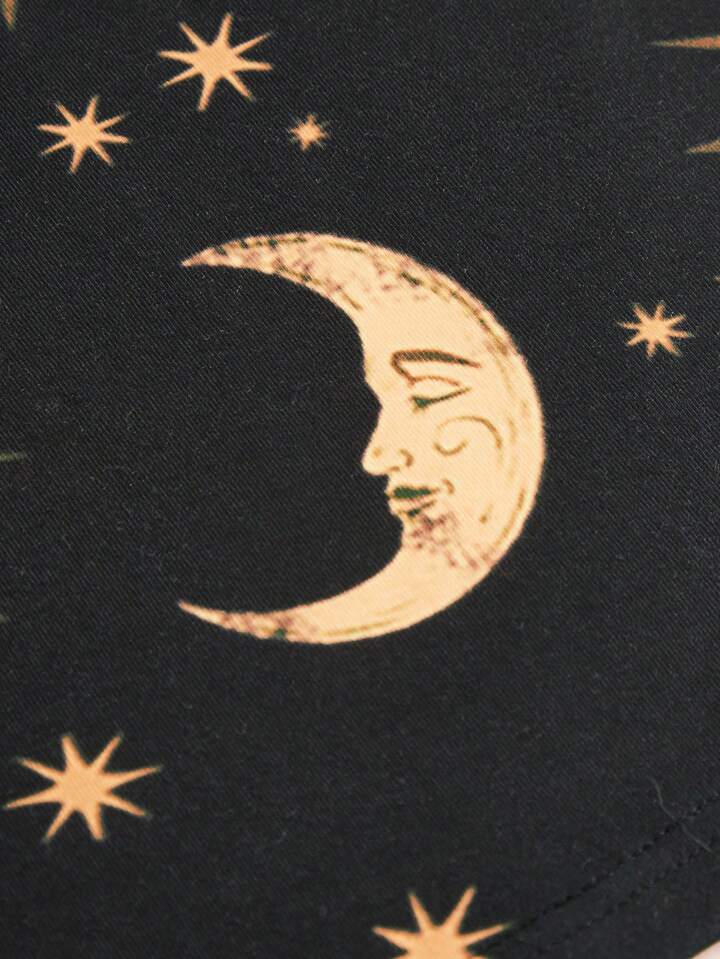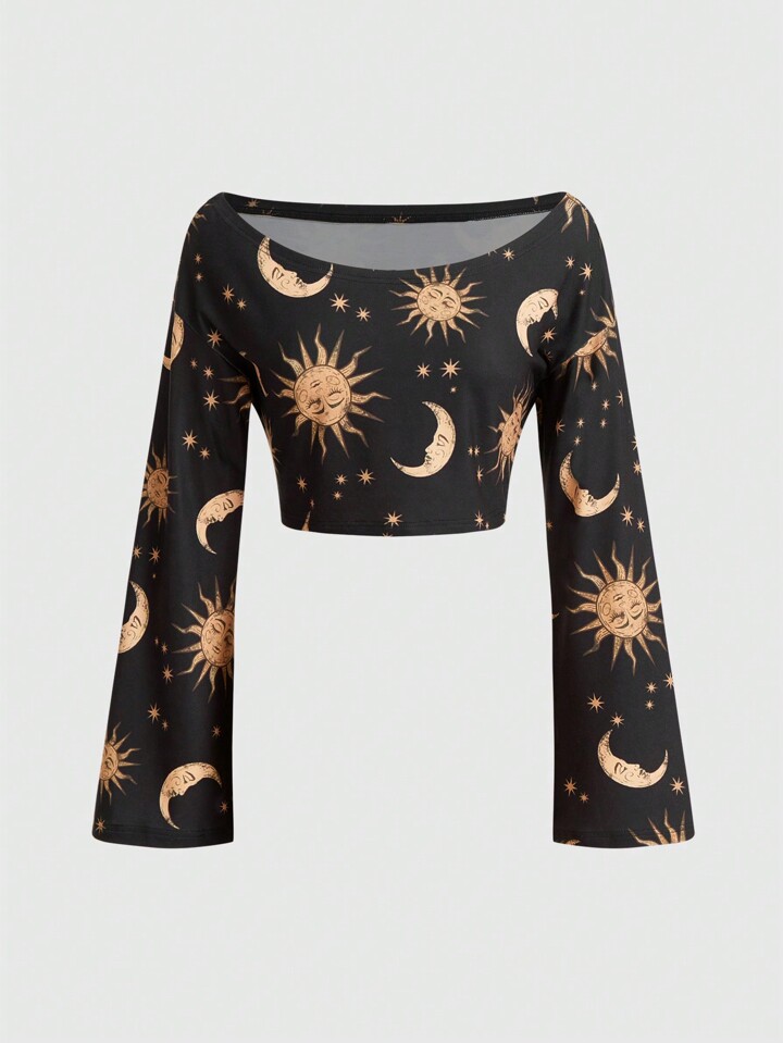 Goth Dark Sun And Full Moon Print Horn Sleeve T-shirt