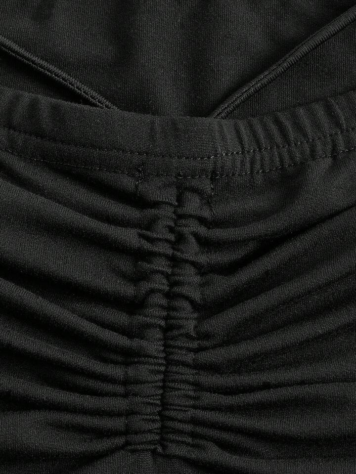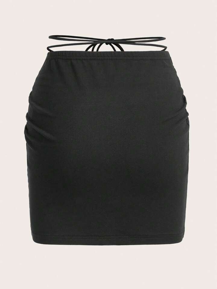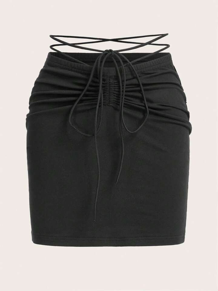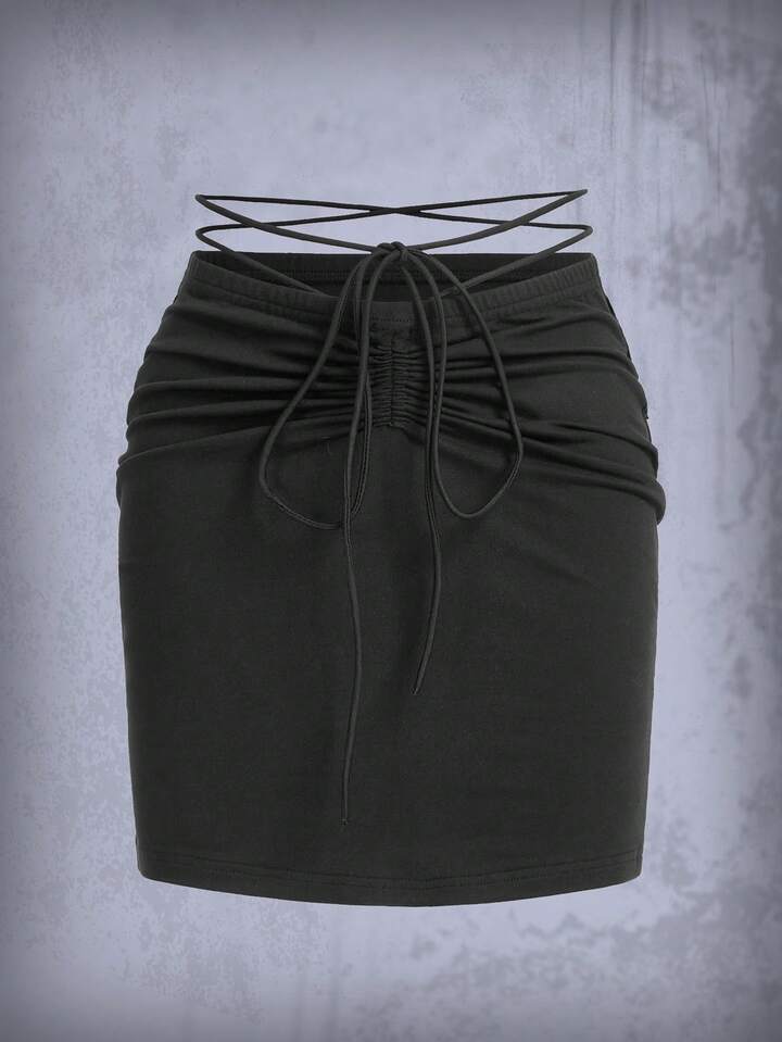 Goth Drawstring Ruched Crisscross Tie Waist Skirt