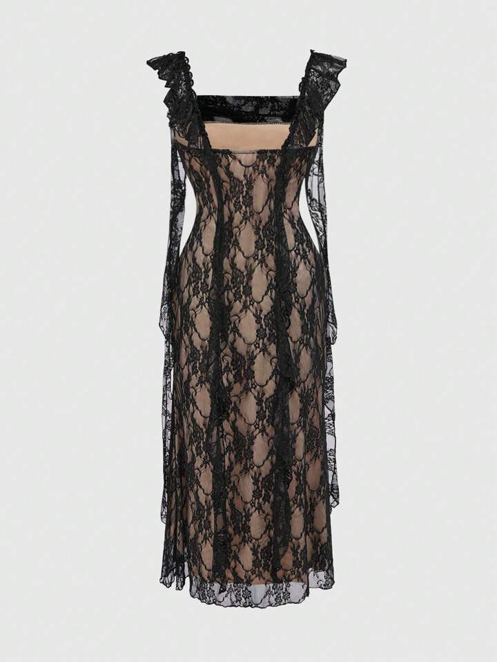 Goth Elegant Sexy Women's Lace Mermaid Hem Draped Neck Bodycon Dress