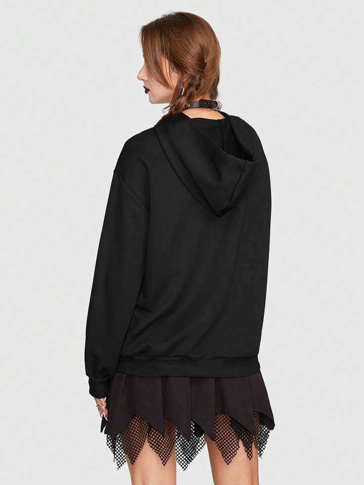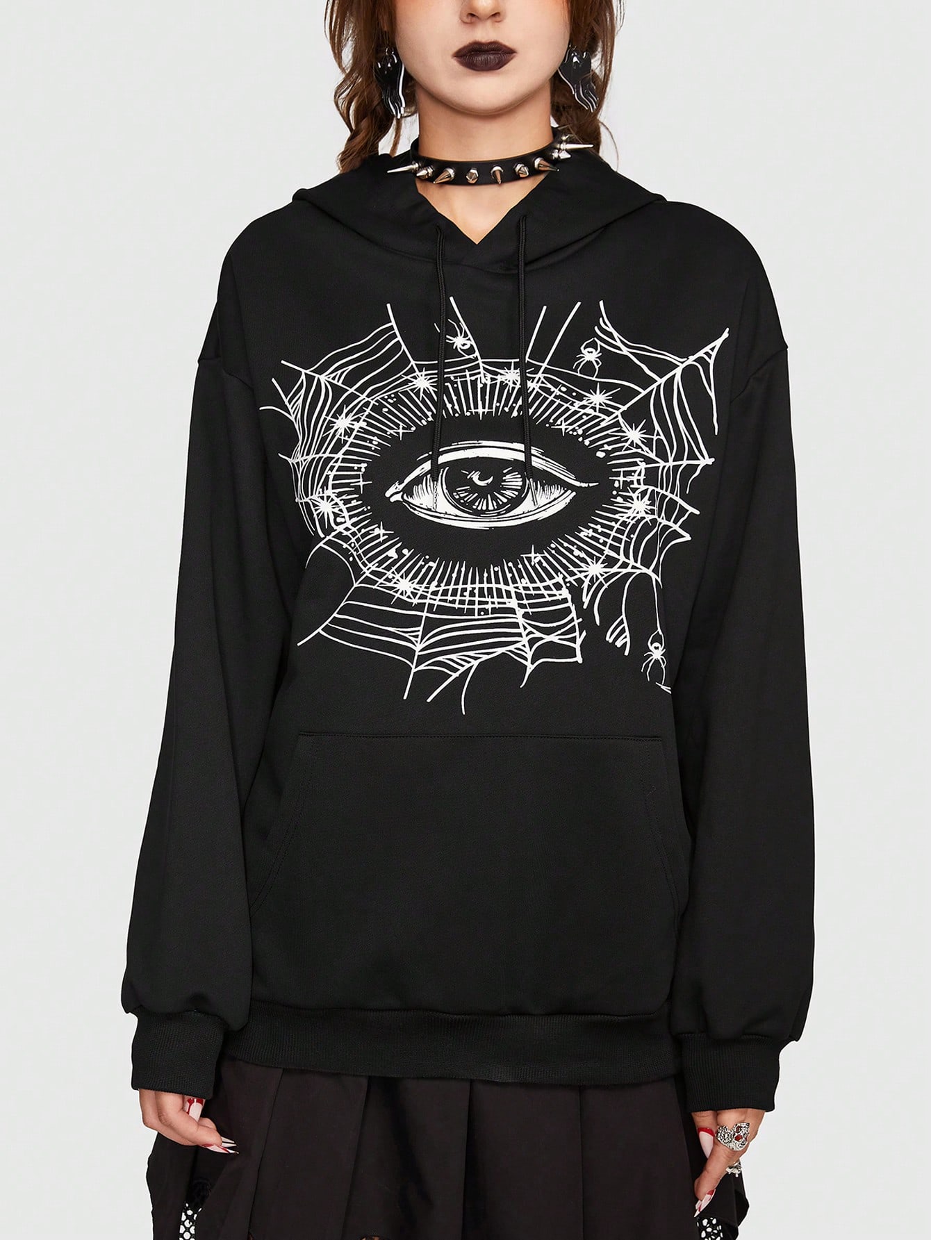 Goth Eye Print Kangaroo Pocket Drawstring Hoodie