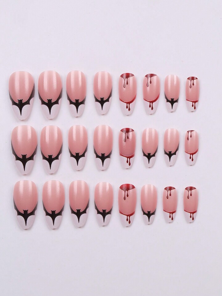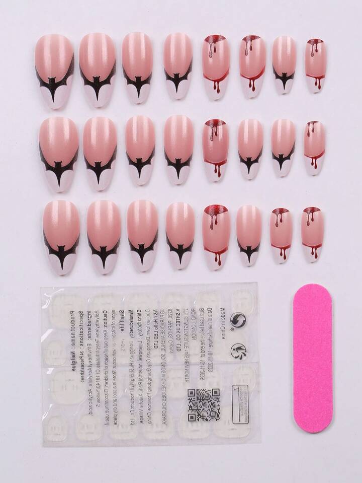 Goth Fashionable Bat Shaped False Press On Nails, Halloween Fake Nails