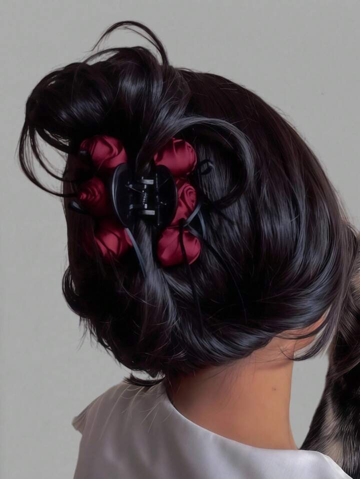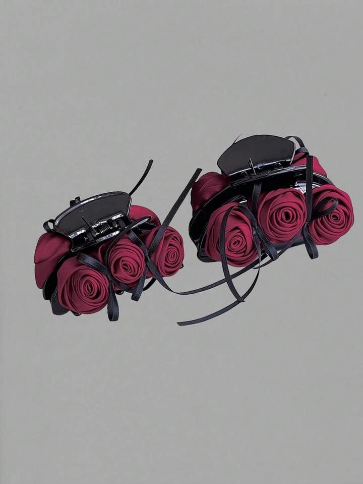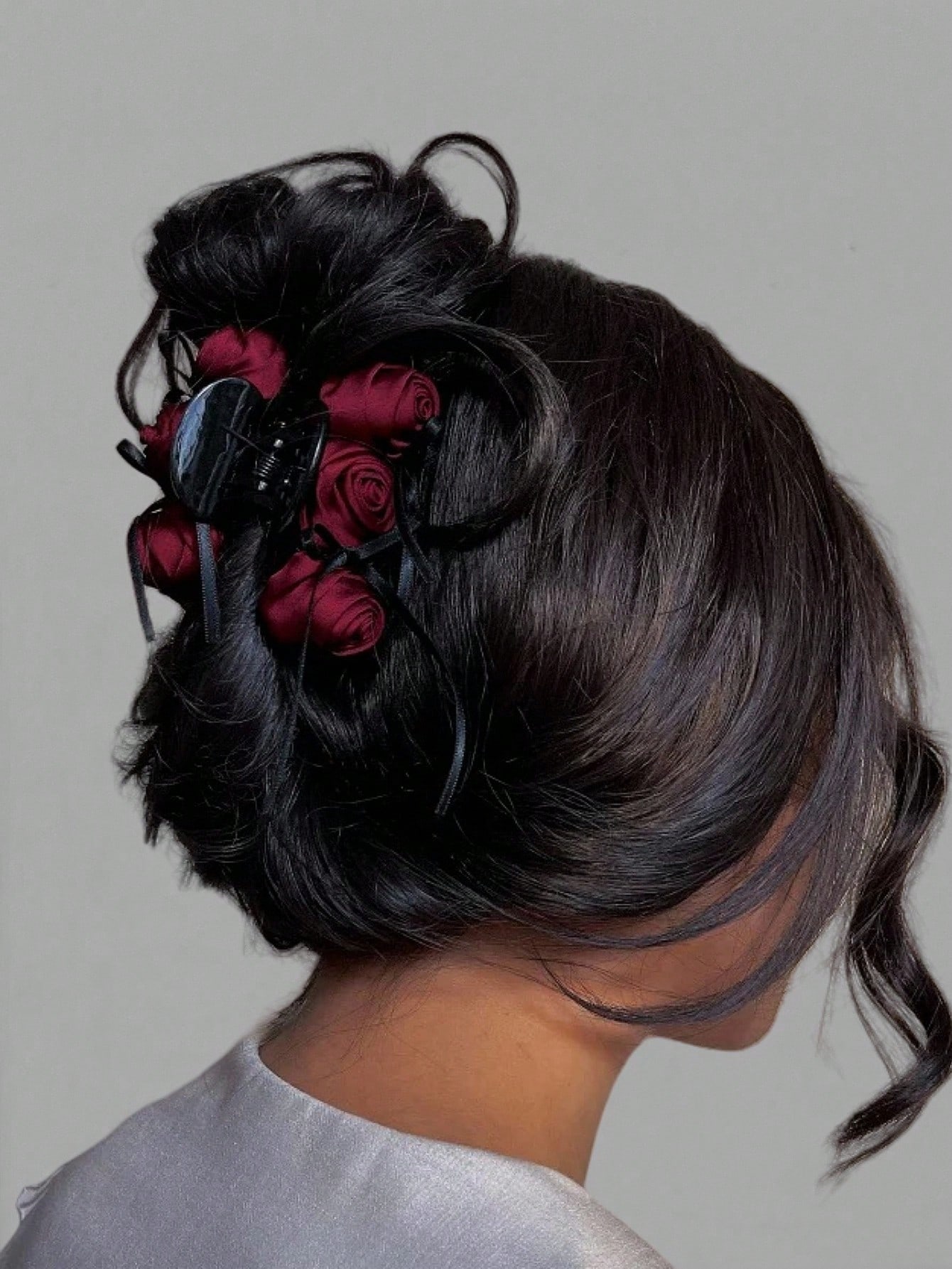 Goth Fashionable & Elegant Rose Bow Dark Hair Clip