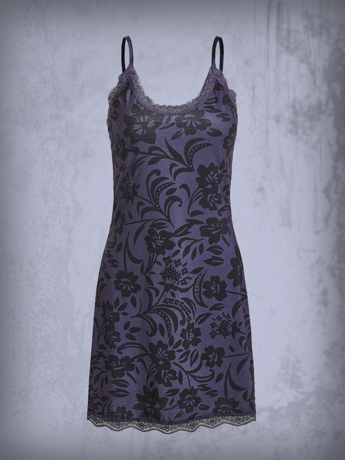 Goth Floral Print Contrast Lace Cami Nightdress