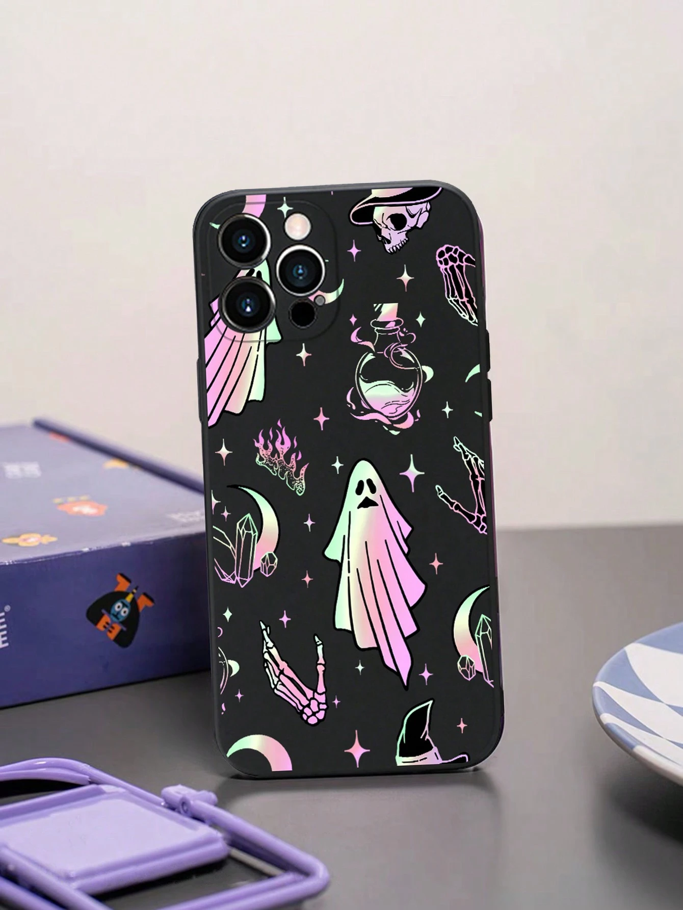 Goth Fun Horror Ghost Liquid Painting Black Phone Case Compatible With Iphone 11, 12, 13 Series