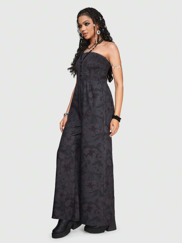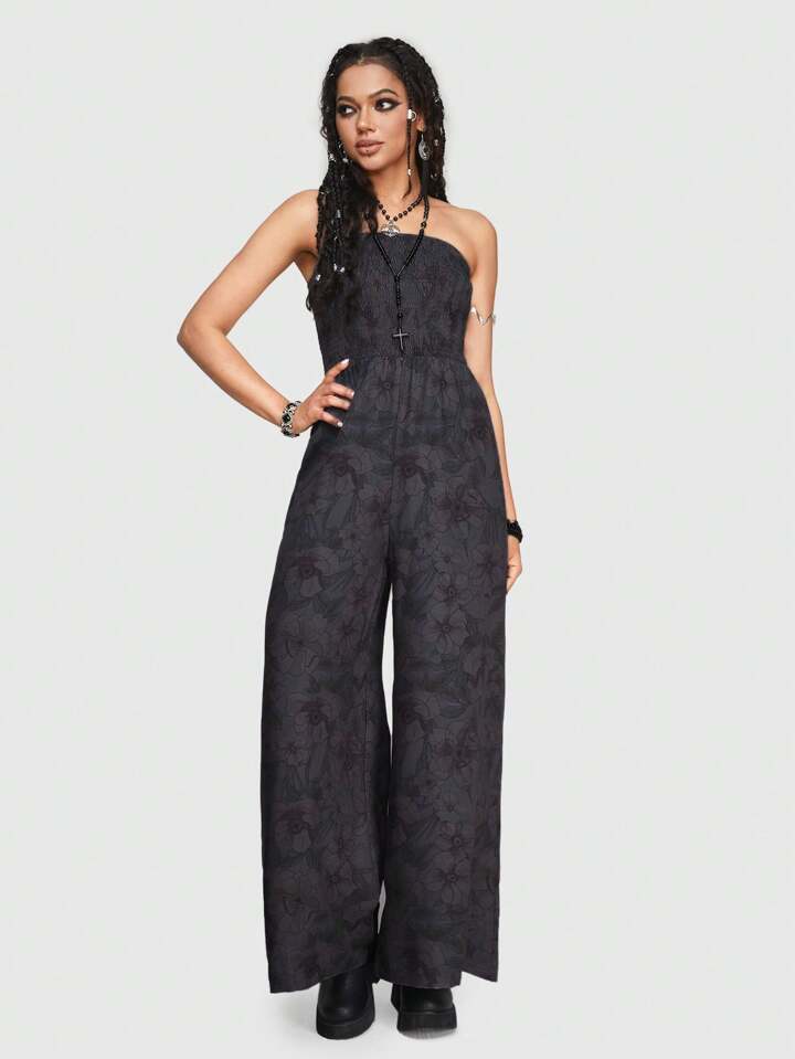 Goth Sen Style Vintage Floral Printed Women'S Jumpsuit