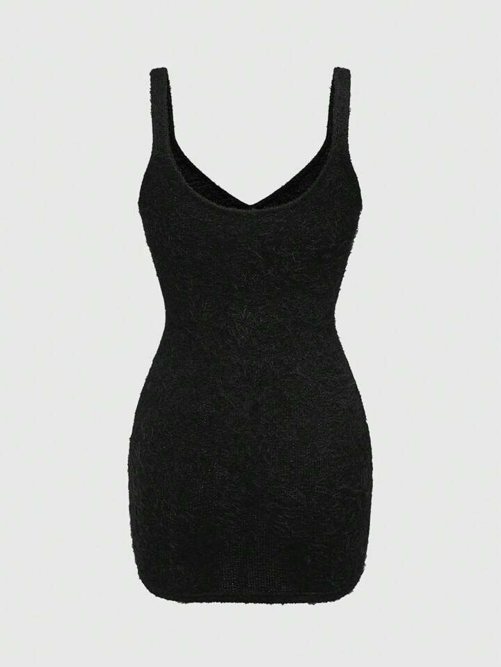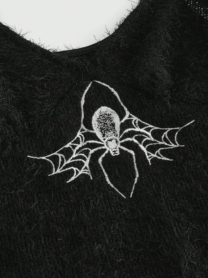 Gothic Mysterious Sexy Women Fluffy Sweater Spider Web Embroidery Form-Fitting Waist Slim Dress