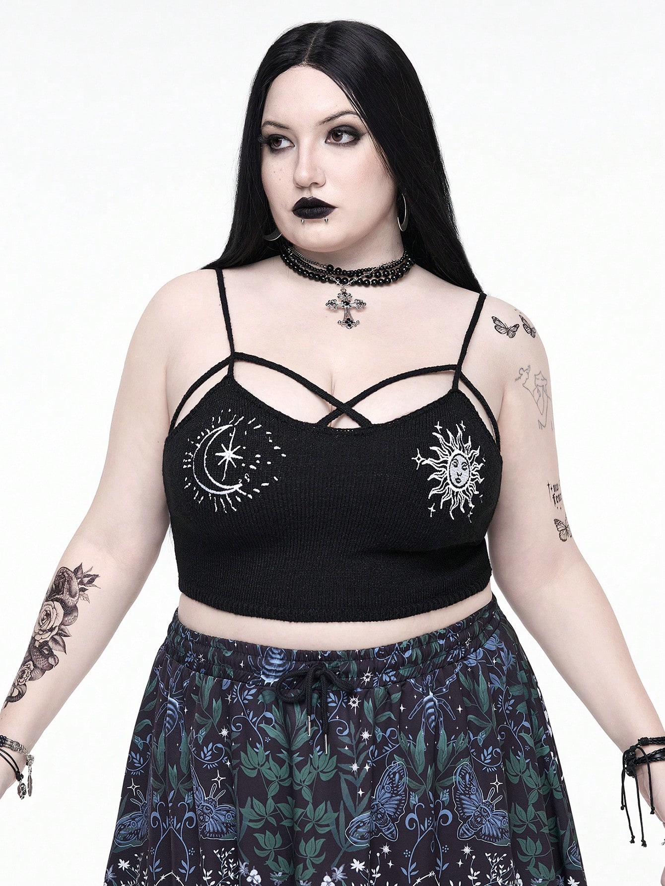 Gothic Plant Embroidery Plus Size Women Knit Loose Summer Boho Tops For Vacation