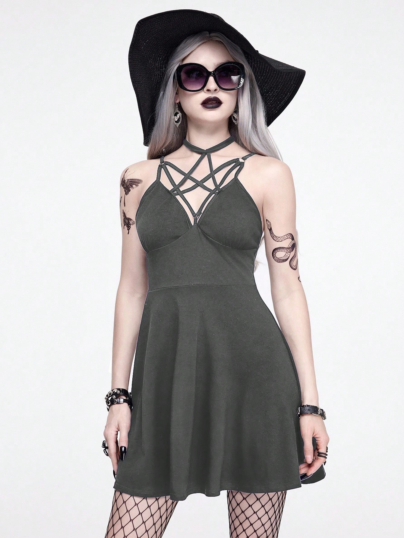 Gothic Style Women's Sexy Solid Color Mini Dress For Summer