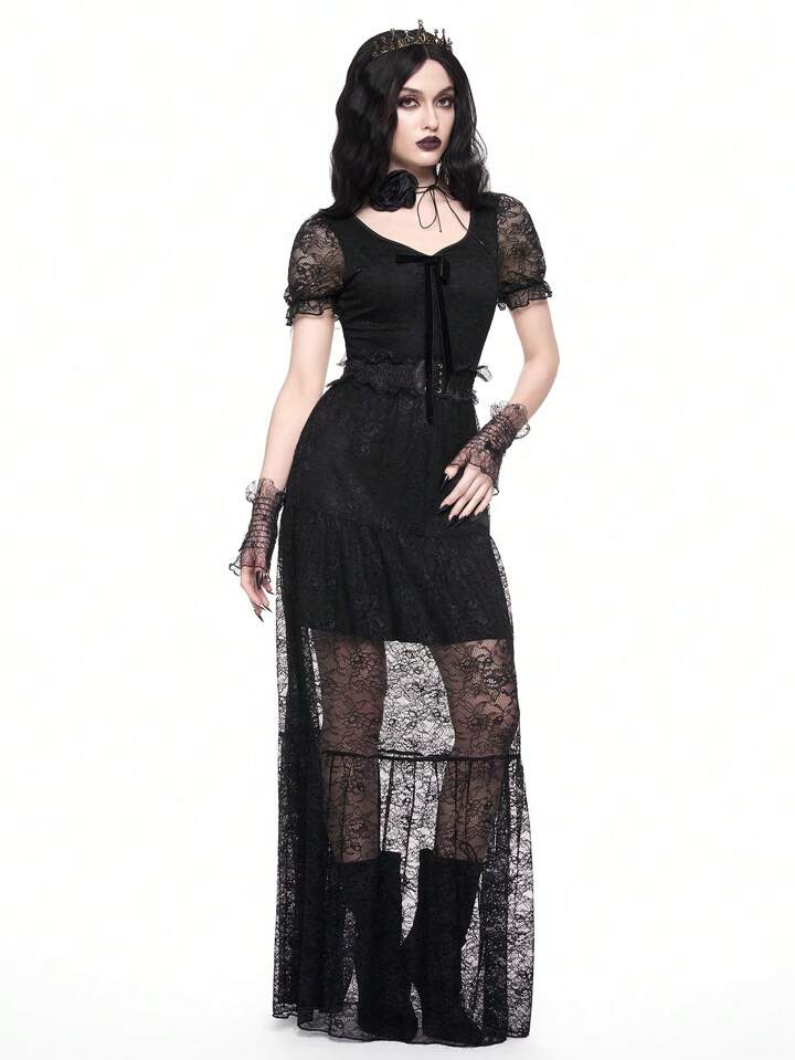 Graduation Dress Gothic Vintage Dark Bride Lace Dress For Women