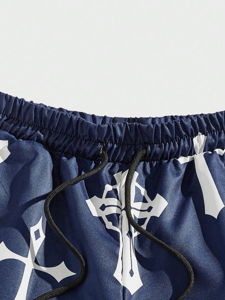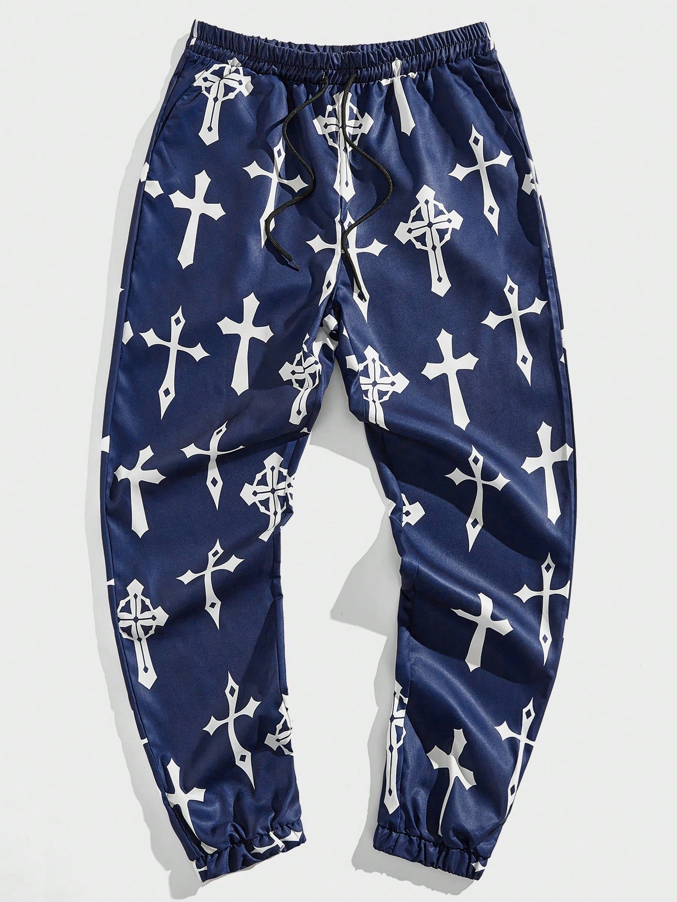 Goth Guys Allover Cross Print Drawstring Waist Pants
