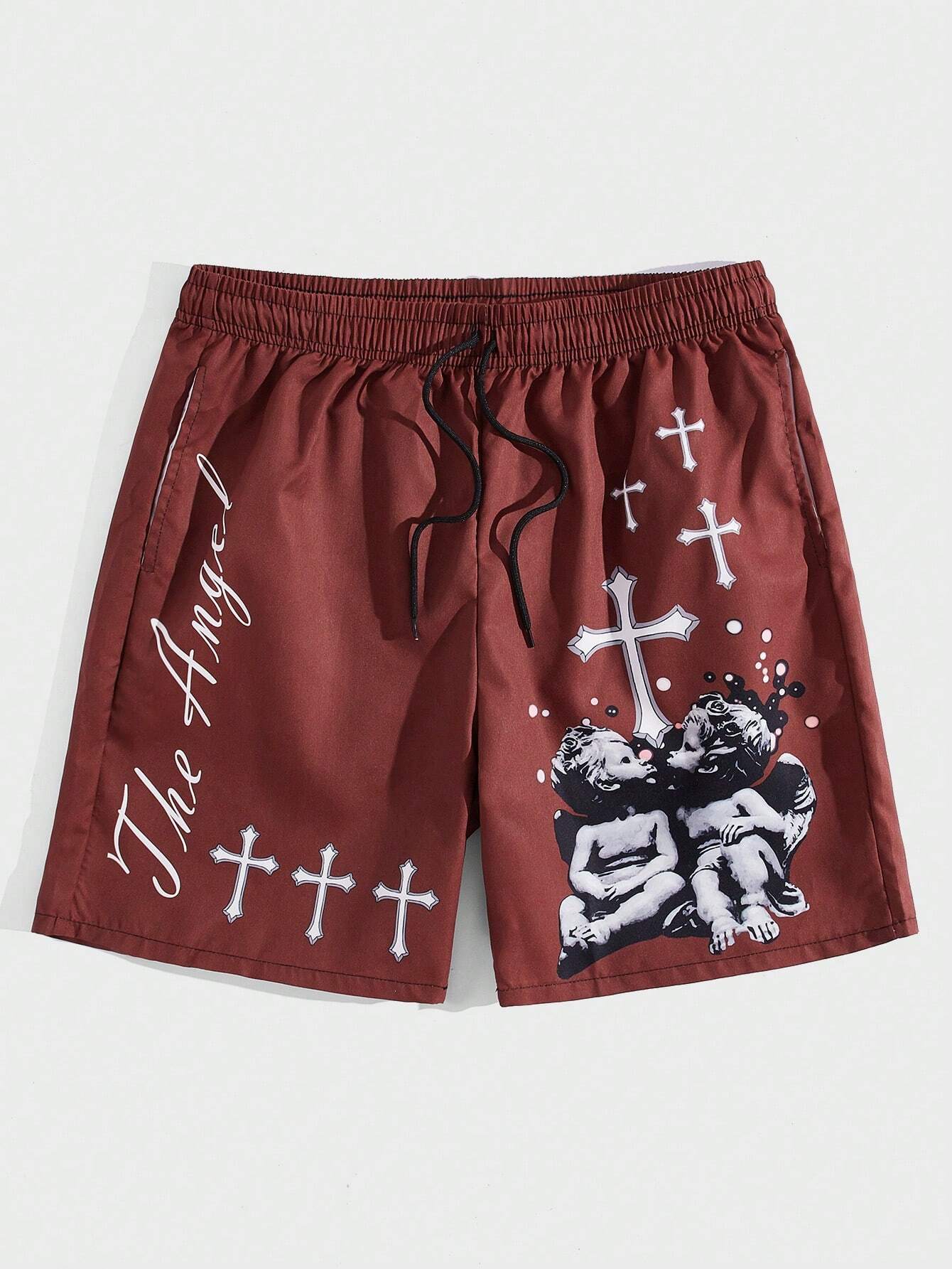 Goth Guys Cross Letter Graphic Drawstring Waist Shorts