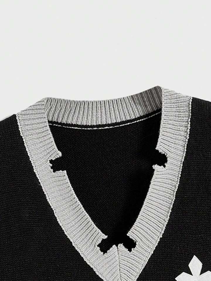 Goth Guys Cross Pattern Contrast Trim Sweater Vest