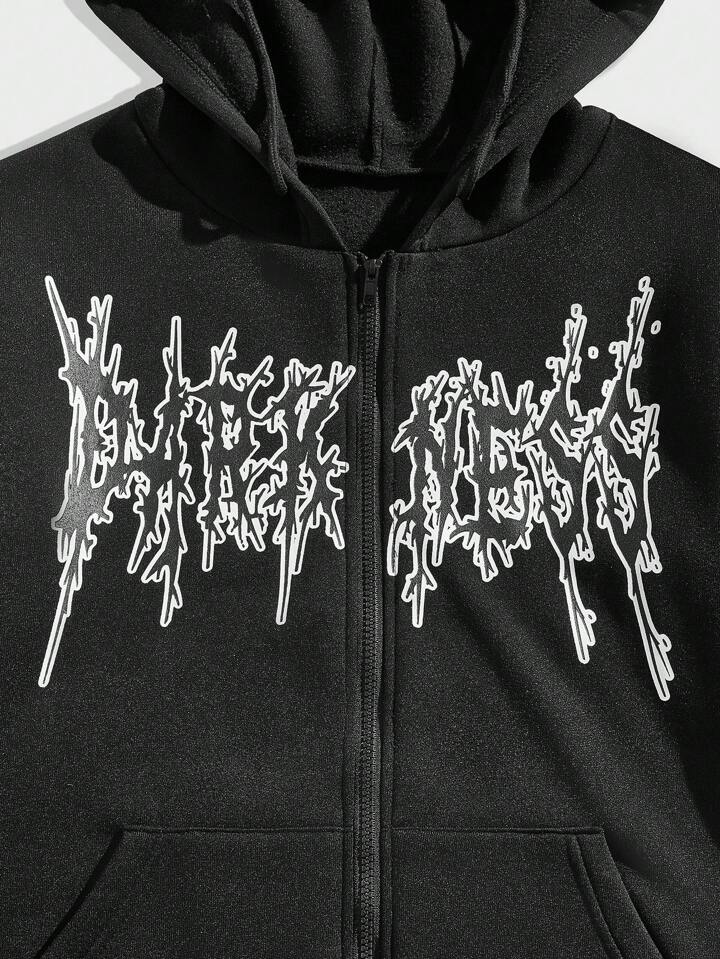 Goth Guys Cross Print Zip Up Drawstring Thermal Lined Hoodie