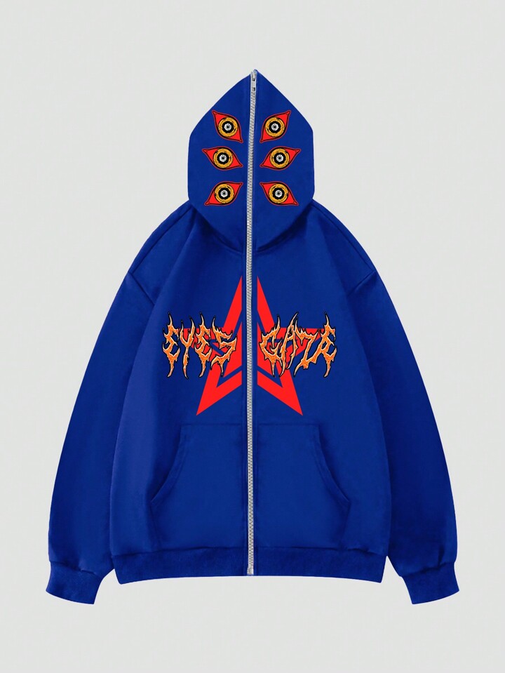 Goth Guys Letter & Star Graphic Zip Up Hoodie