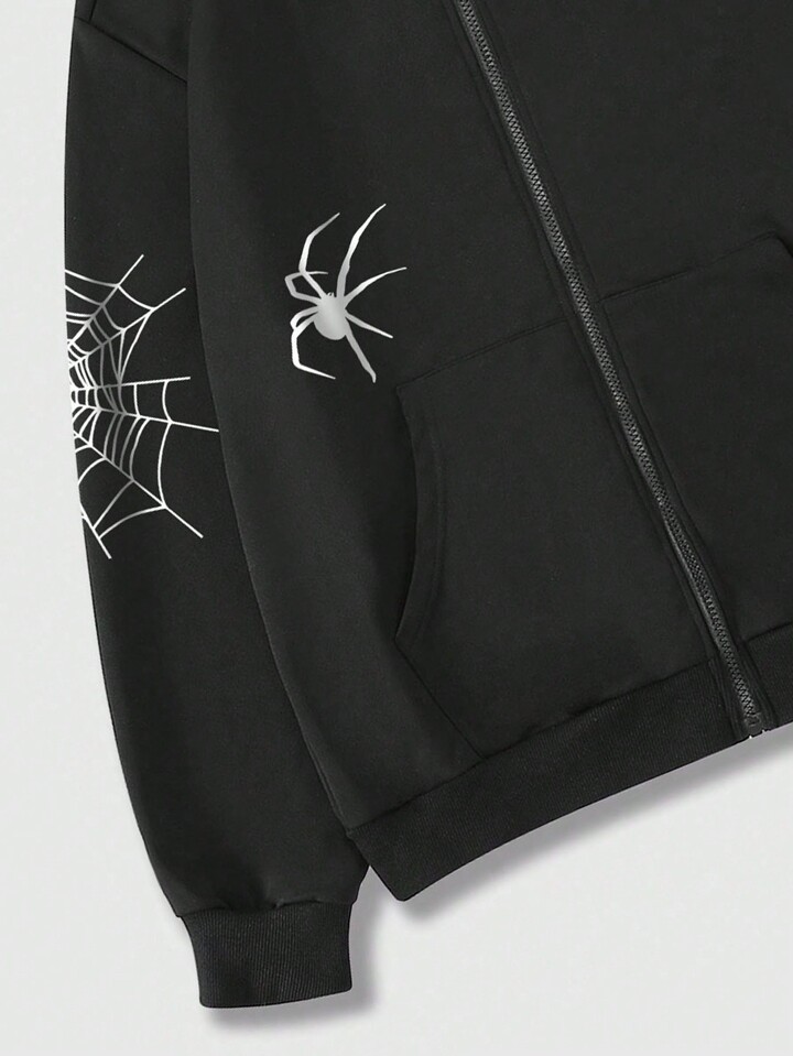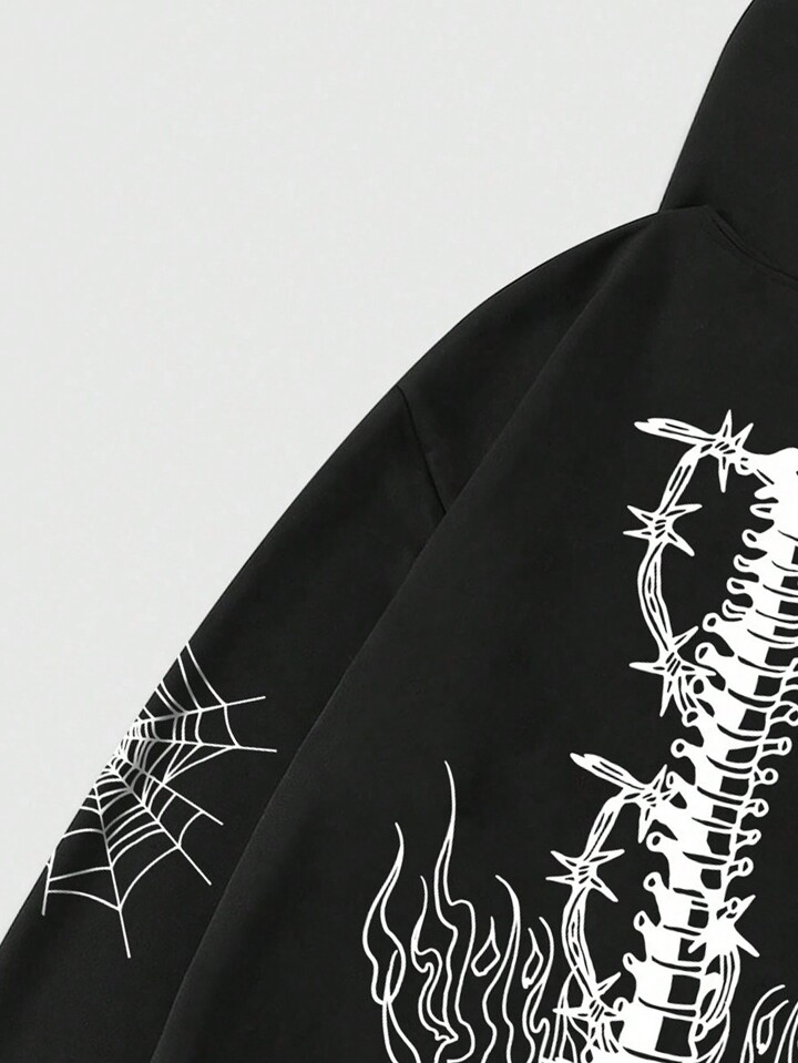 Goth Guys Skeleton Print Drawstring Hoodie