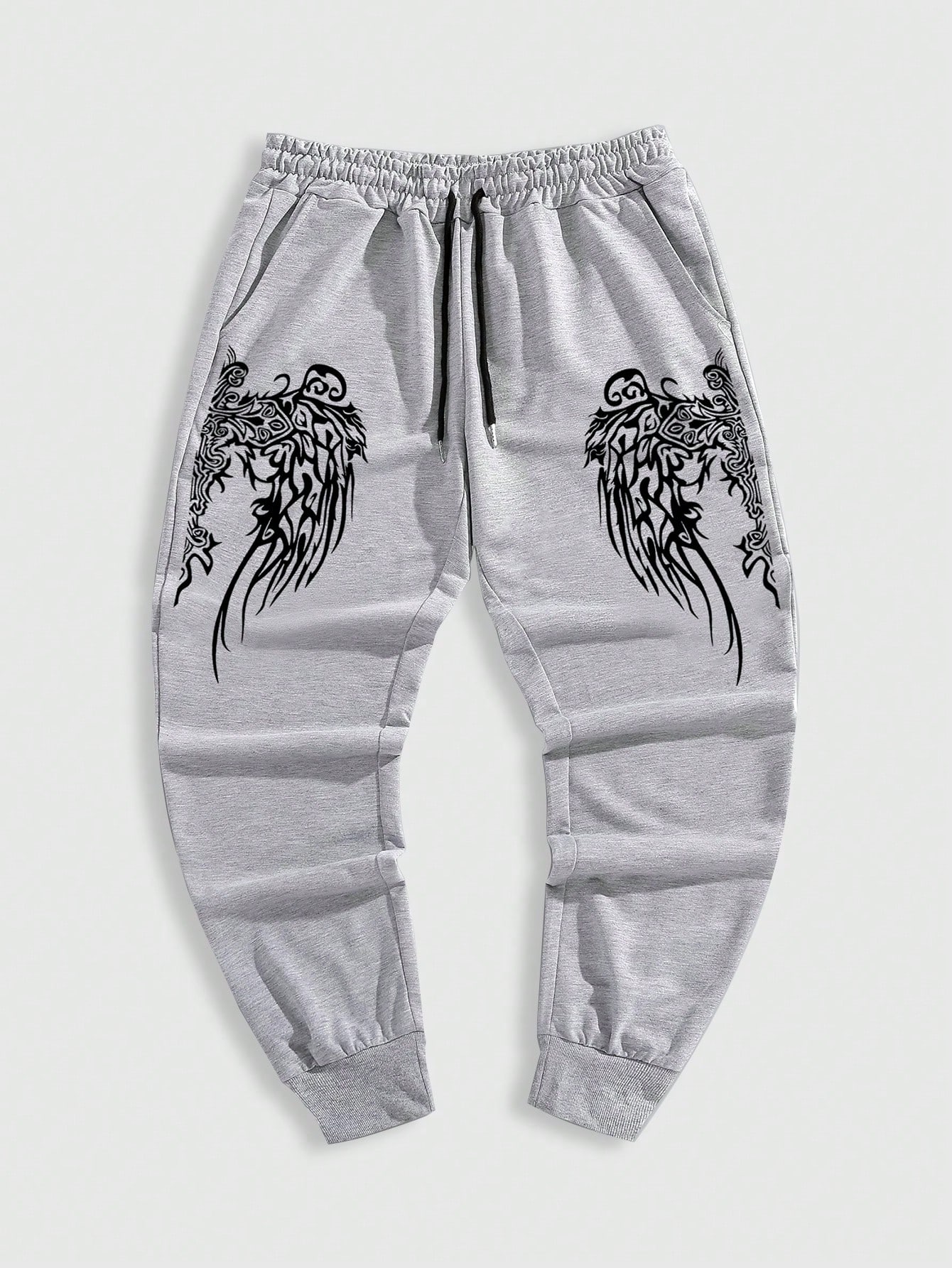 Goth Guys Wings Print Drawstring Waist Sweatpants