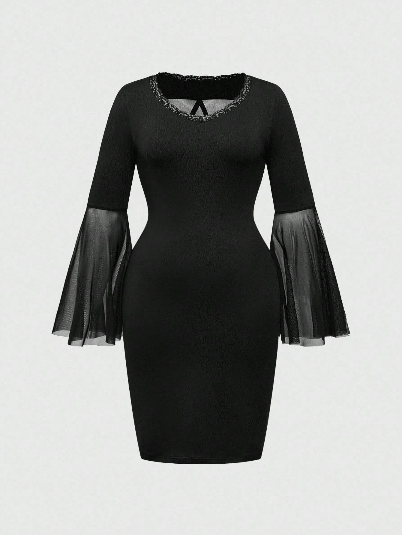 Halloween Gothic Profession Backside Star Strap Mesh Lace Patchwork Cross Decor Deep V-Neck Plus Size Waist Cinched Slit Dress