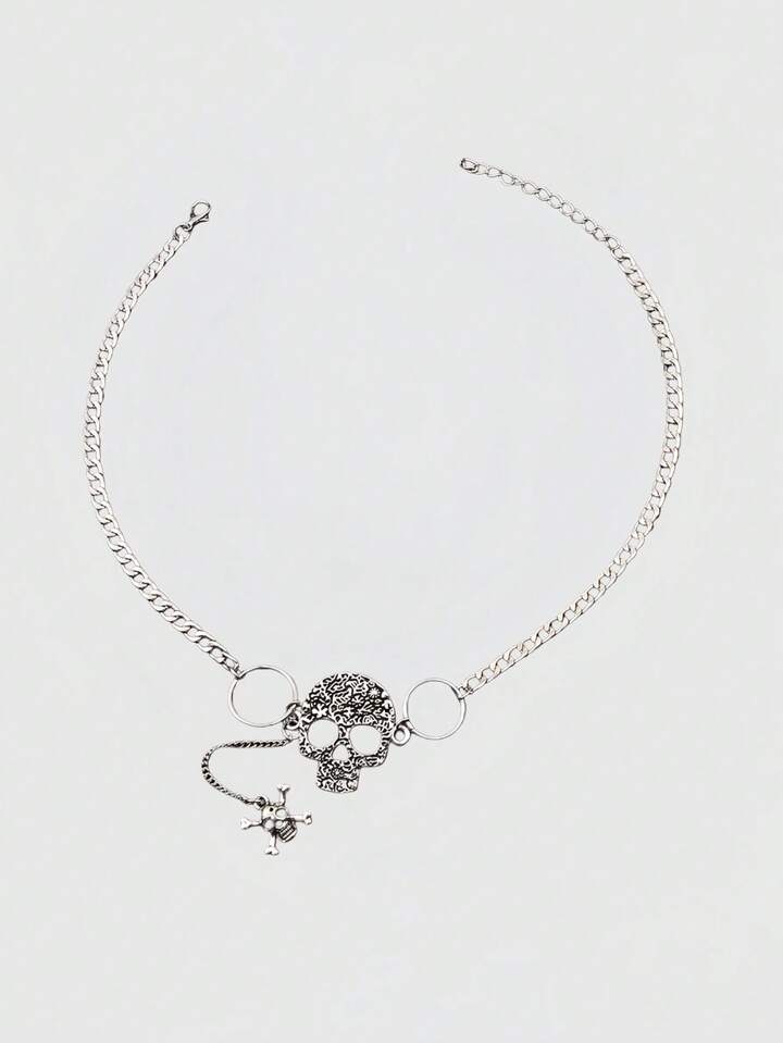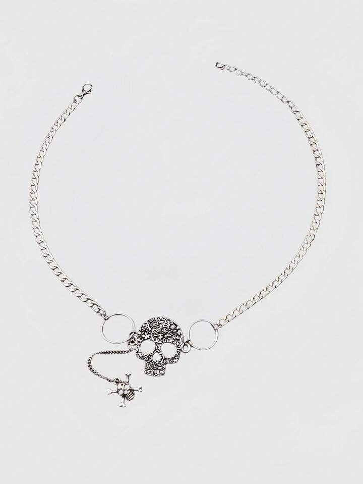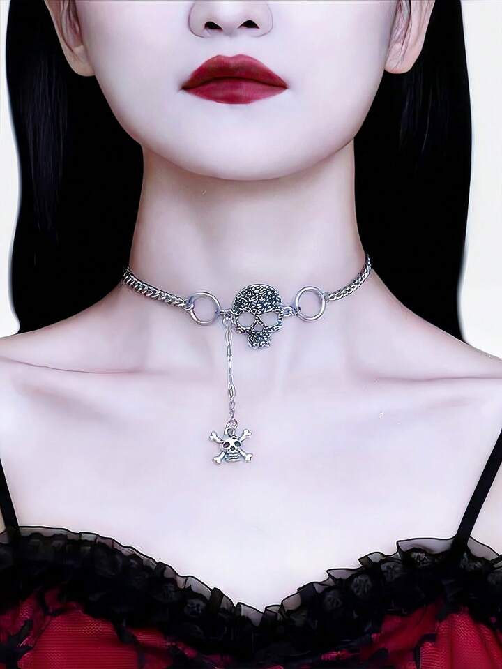 Goth Leopard Print Rivet Cross Pendant Necklace, Punk Choker Necklace, Versatile Stylish Clavicle Chain