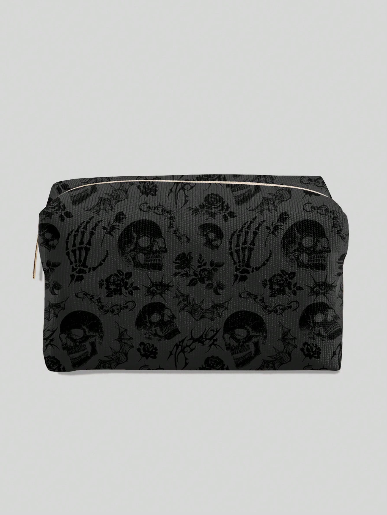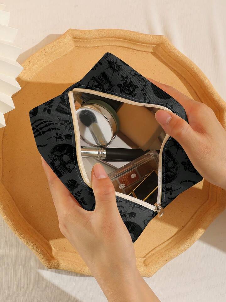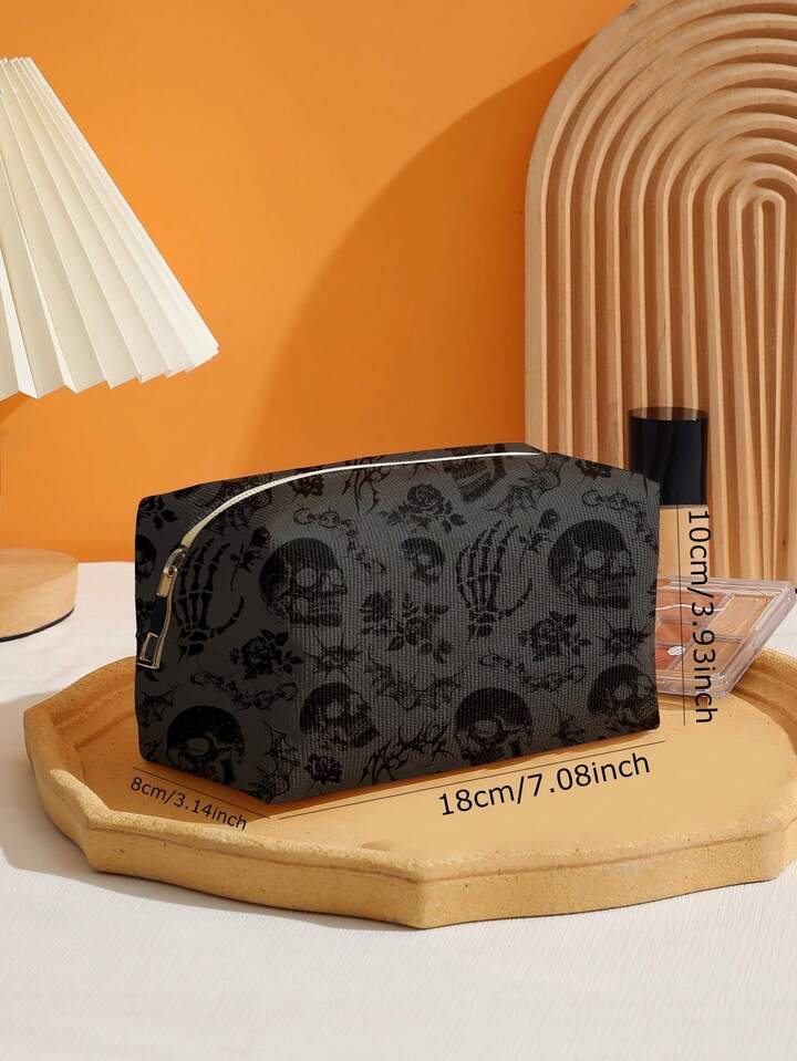 Goth Letter And Cartoon Pattern Quilted Makeup Bag, Portable Makeup Storage Bag With Zipper, Multifunctional Storage Bag, Lightweight Travel Bag, Suitable For Men And Women