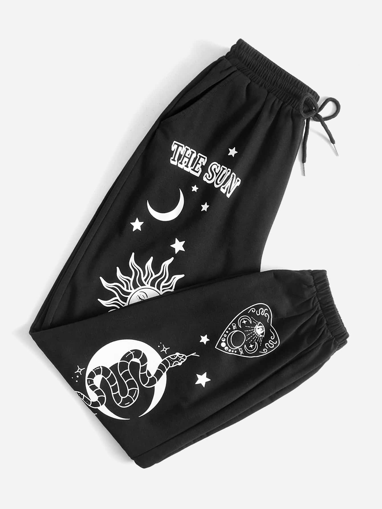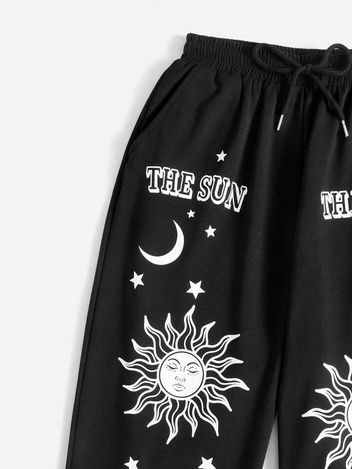 Goth Letter Sun & Moon Graphic Drawstring Sweatpants