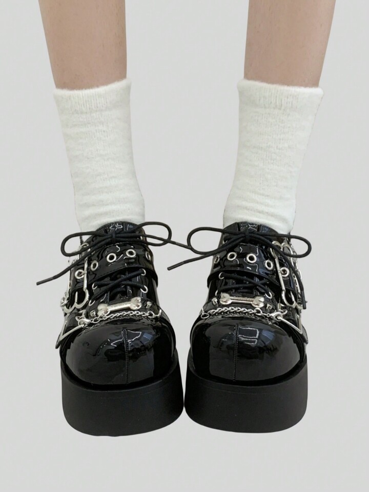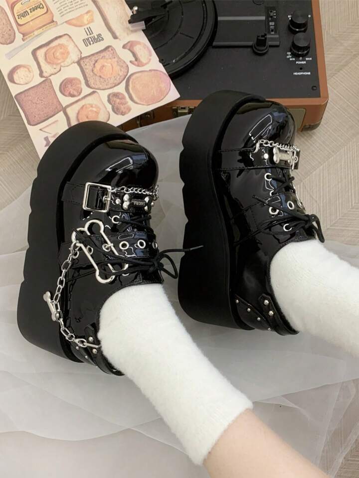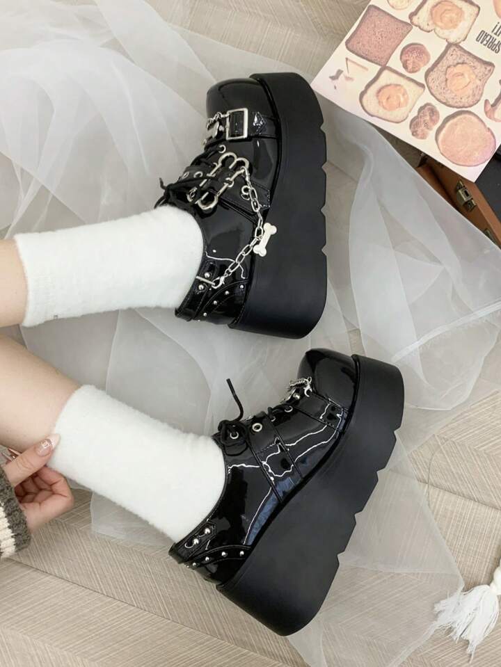 Goth Lolita Style Black Thick High-Heeled Mary Jane Shoes For Women With Platform And Chunky Heels, Ideal For Spring 2024 And JK Uniform Outfits