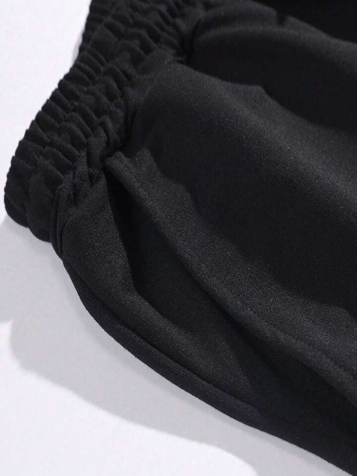 Goth Loose Fit Black Sweatpants With Cross Pattern And Elastic Cuffs