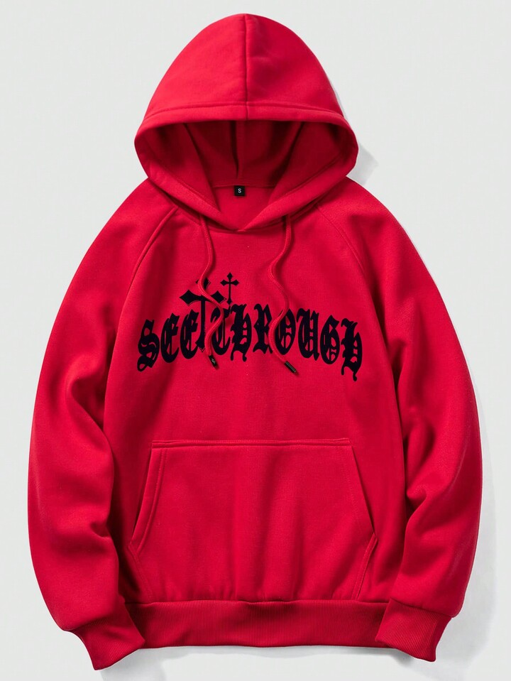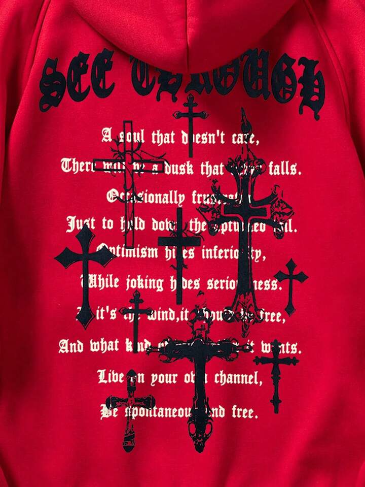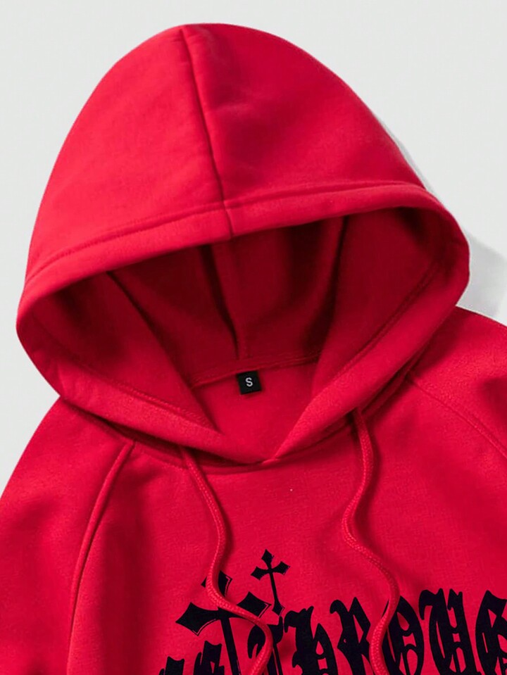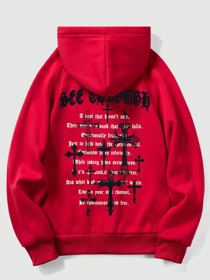 Goth Men Cross Print Raglan Long Sleeve Hooded Sweatshirt