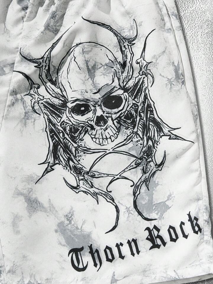 Goth Men Skull & Letter Graphic Tie Dye Drawstring Waist Shorts, School