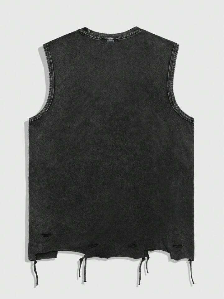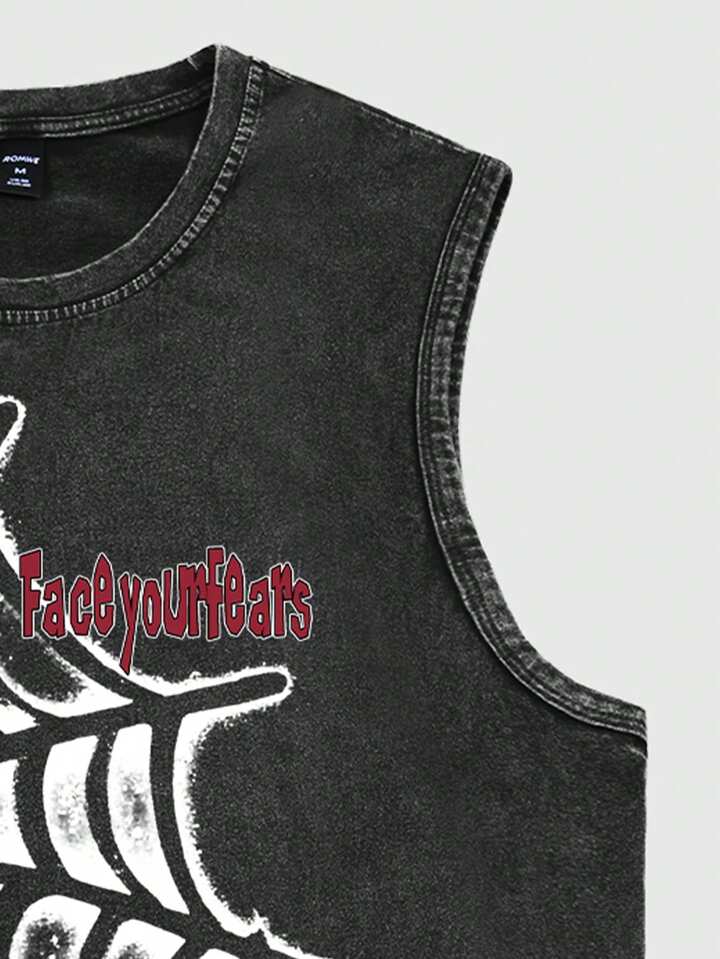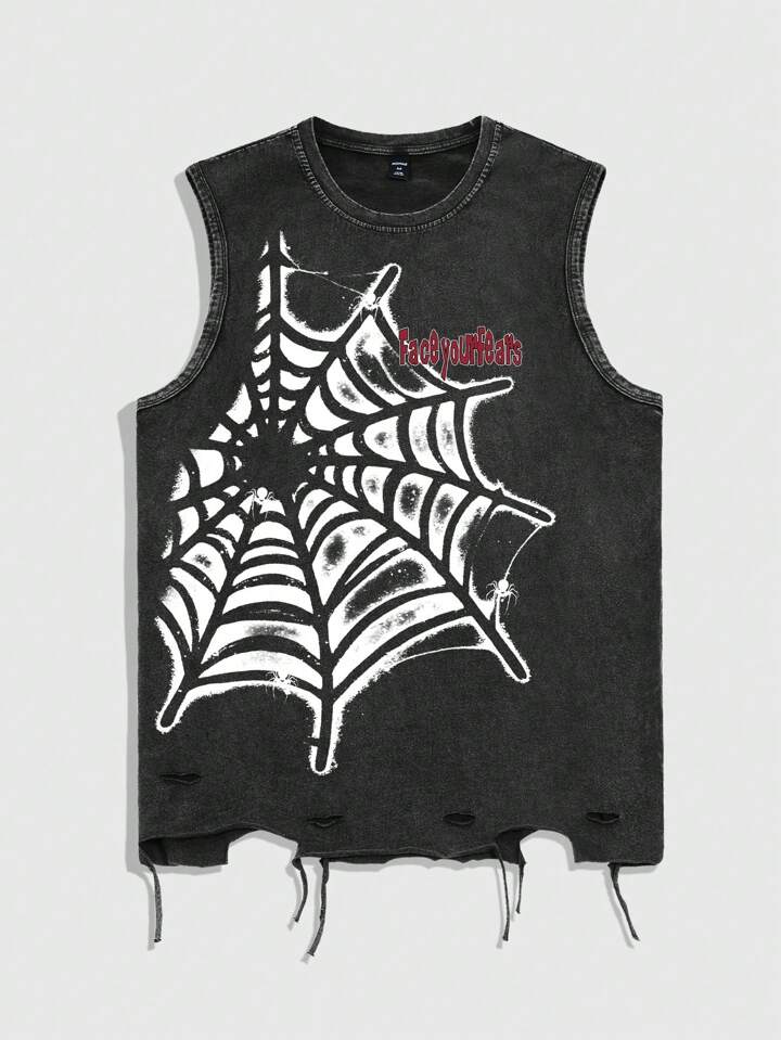 Goth Men Spider Washed Acid-Washed Casual Sleeveless Tank Top, Halloween