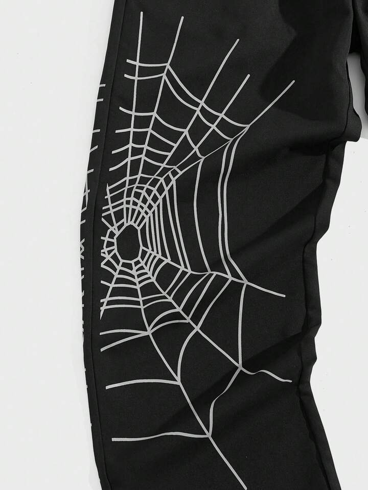 Goth Men Spider Web & Letter Graphic Drawstring Waist Pants