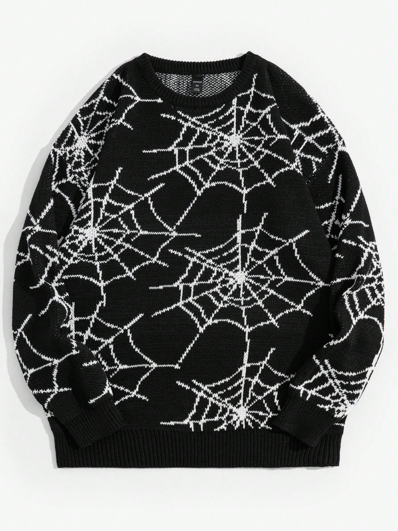 Goth Men Spider Web Pattern Drop Shoulder Sweater
