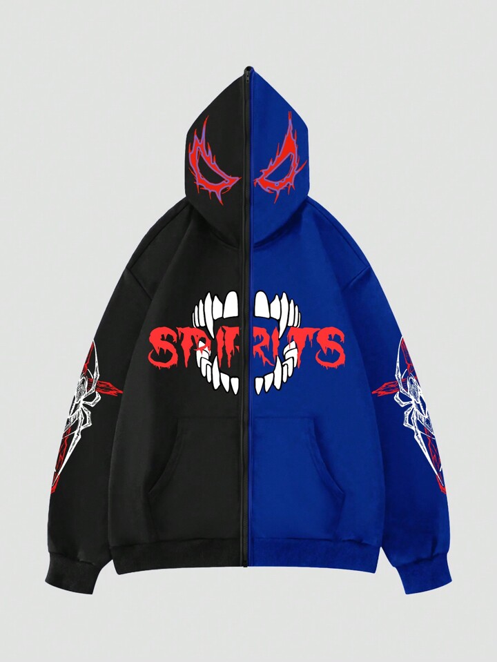 Goth Men Two-Tone Full Zip Design Sweatshirt