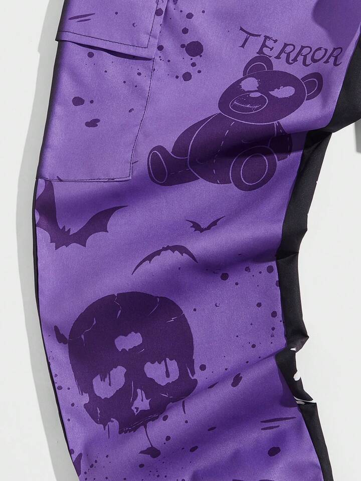Goth Men Two Tone Skull & Letter Graphic Drawstring Waist Pants