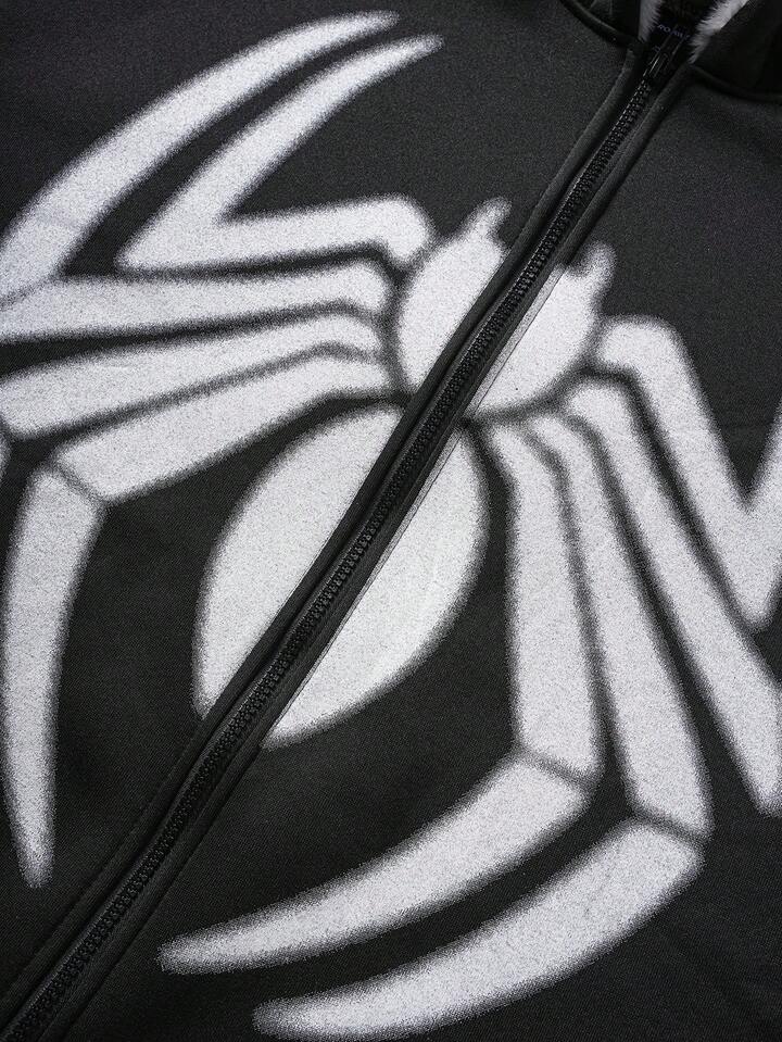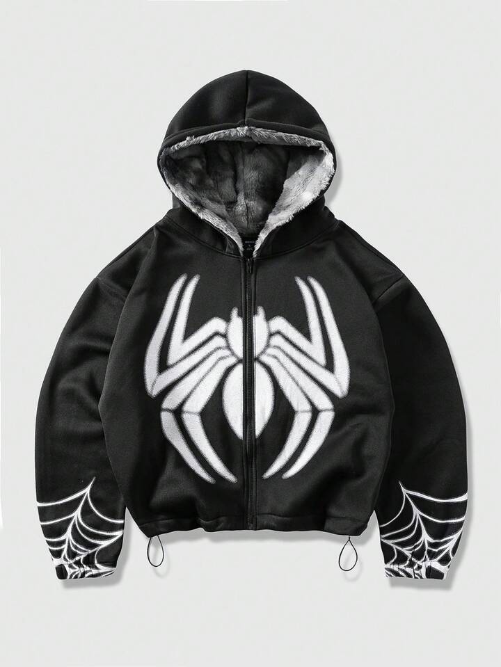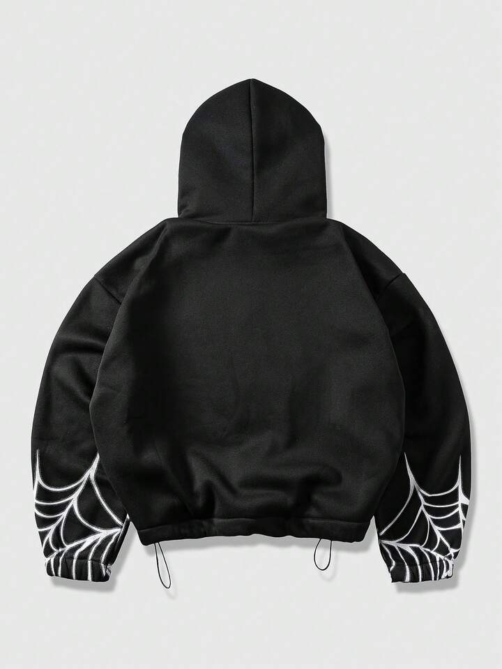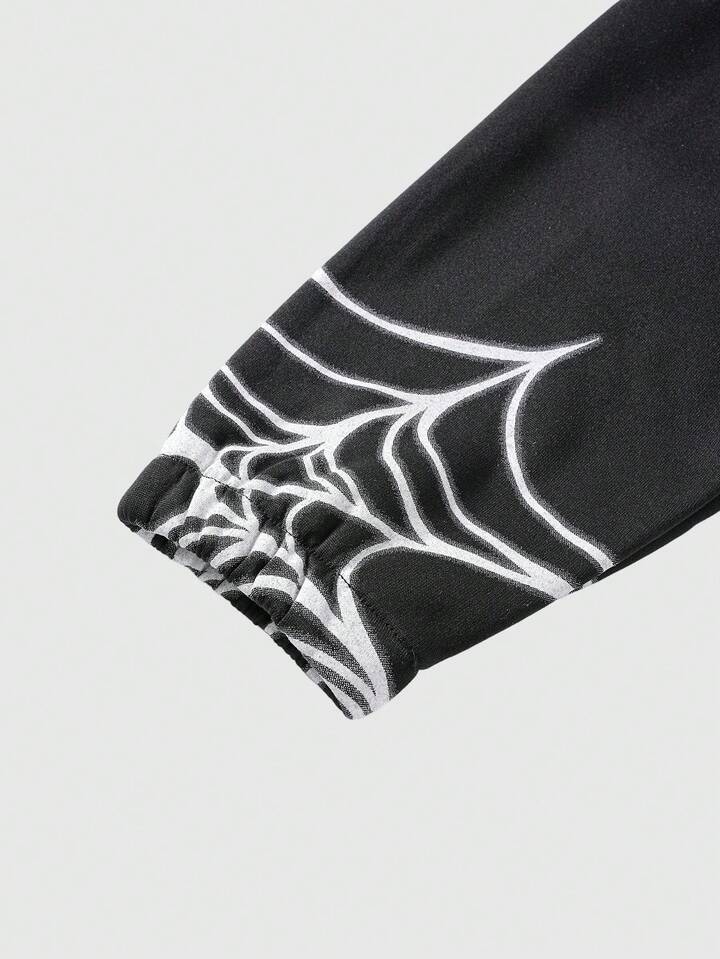 Goth Men's Autumn/Winter Fashion Spider Web Print Thermal Lined Hoodie Sweatshirt