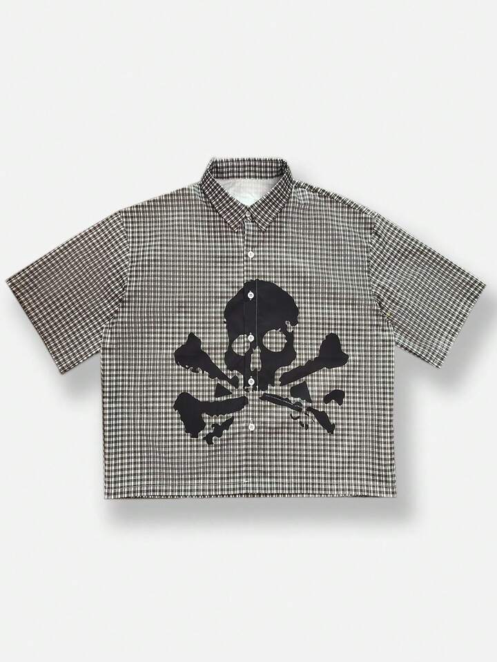 Goth Men's Casual Plaid Skull Print Shirt Halloween, Summer