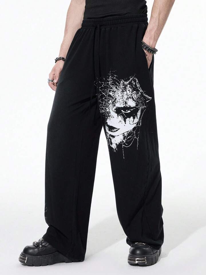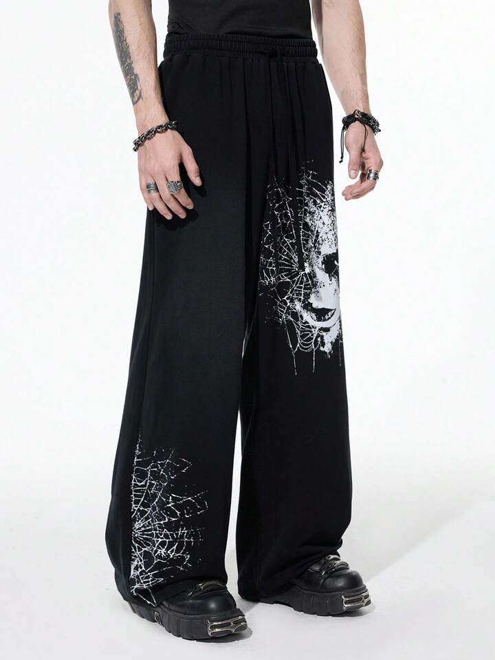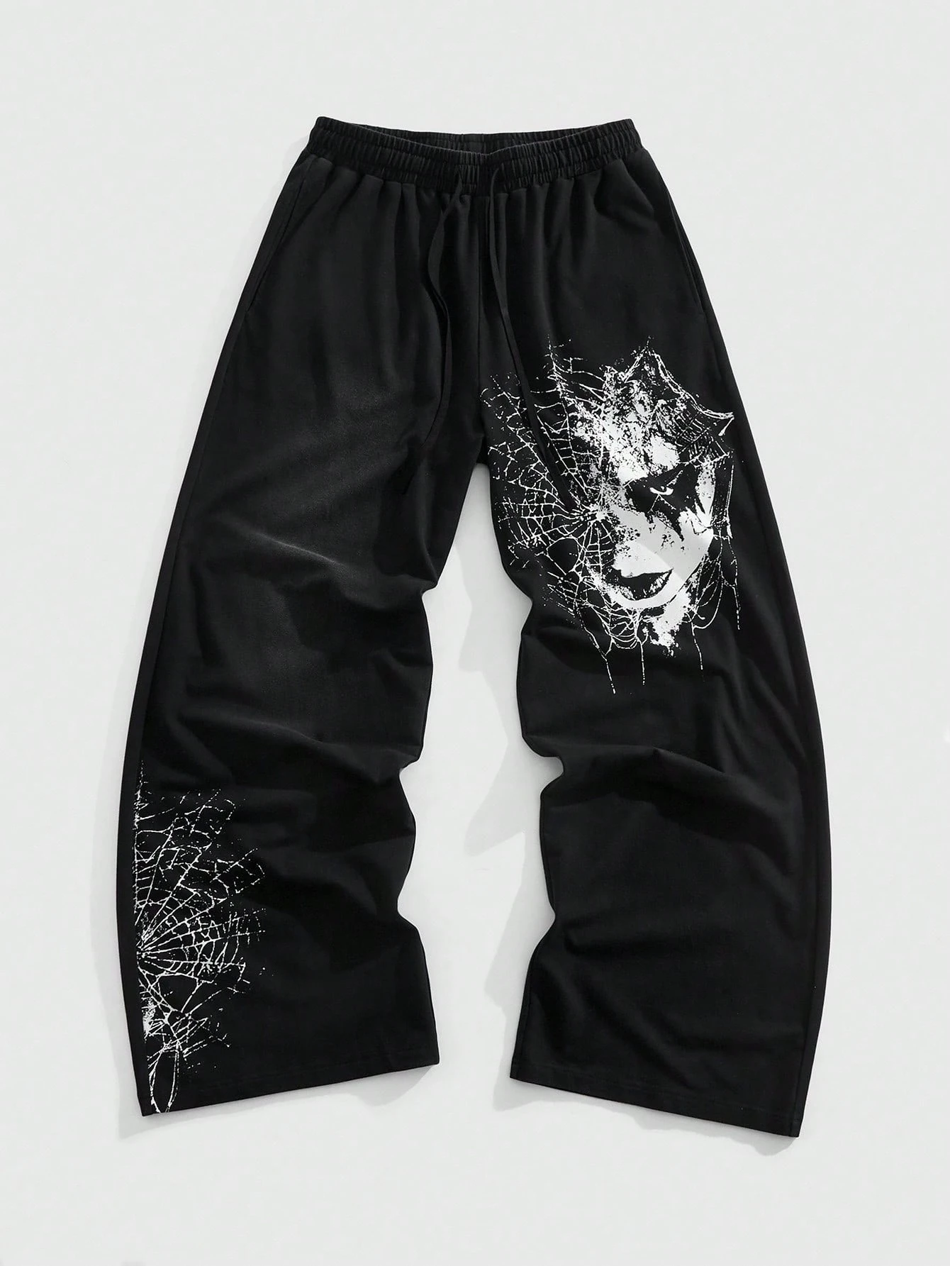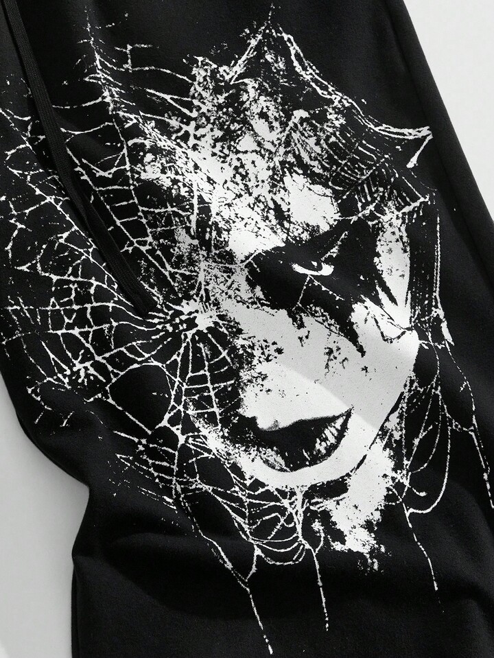 Goth Men's Dark Face & Spider Web Print Sweatpants Halloween