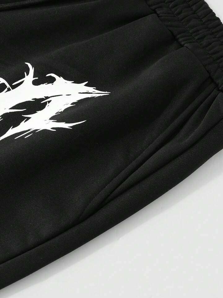Goth Men's Dinosaur Cross Letter Print Drawstring Waist Sweatpants