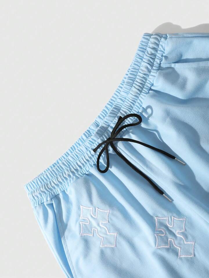 Goth Men's Drawstring Waist Simple Cross Embroidery Shorts, Football Style, School