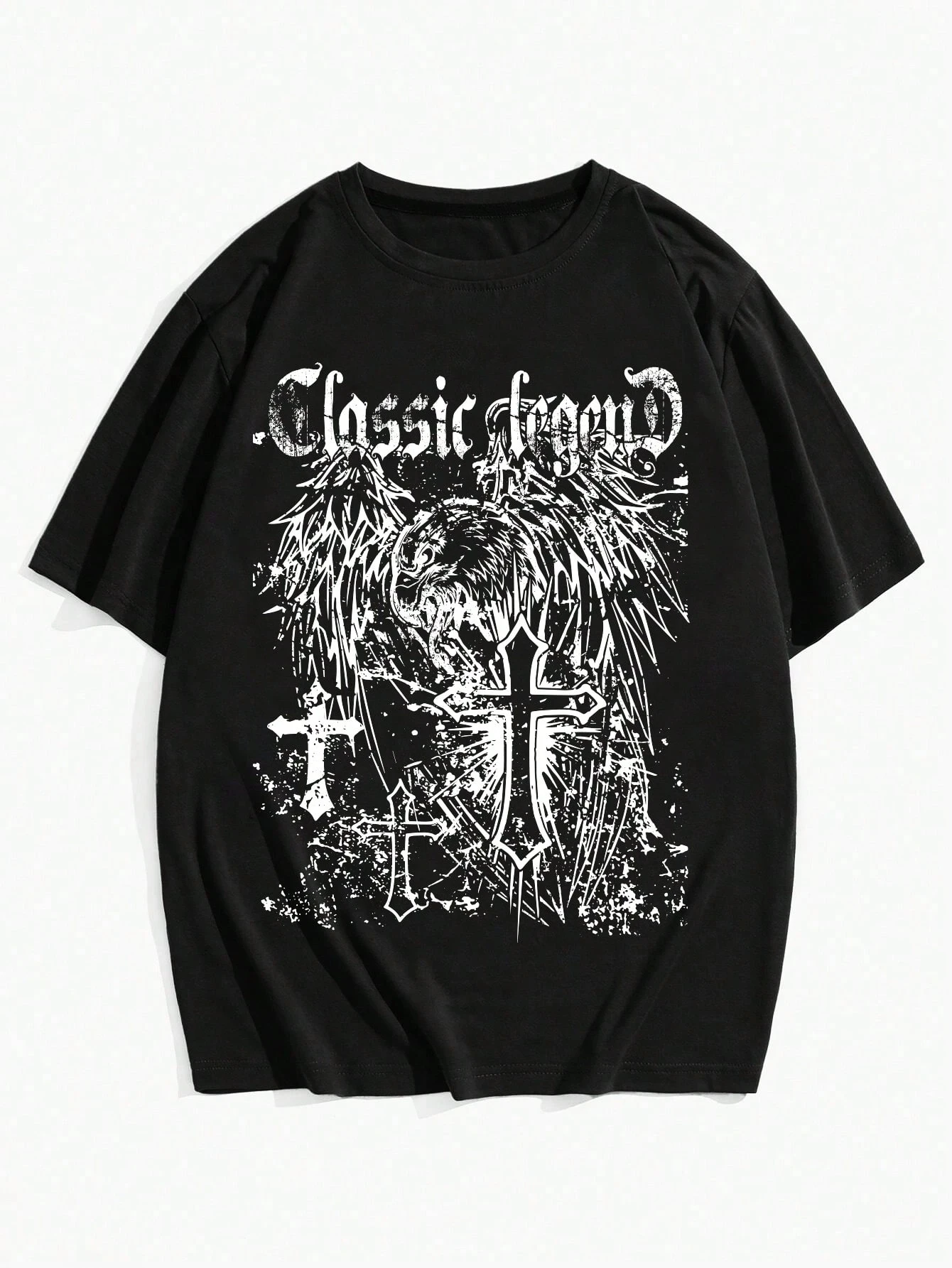 Goth Men's Letter & Cross Print Round Neck Short Sleeve Casual T-Shirt