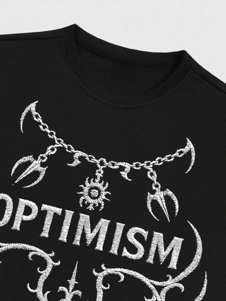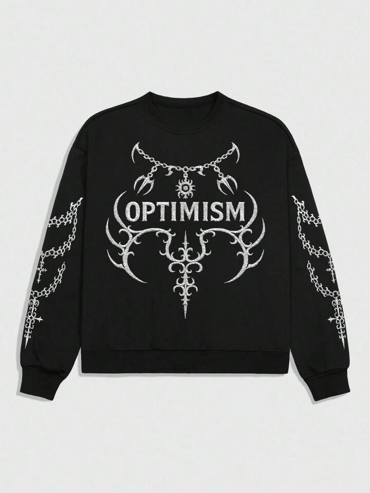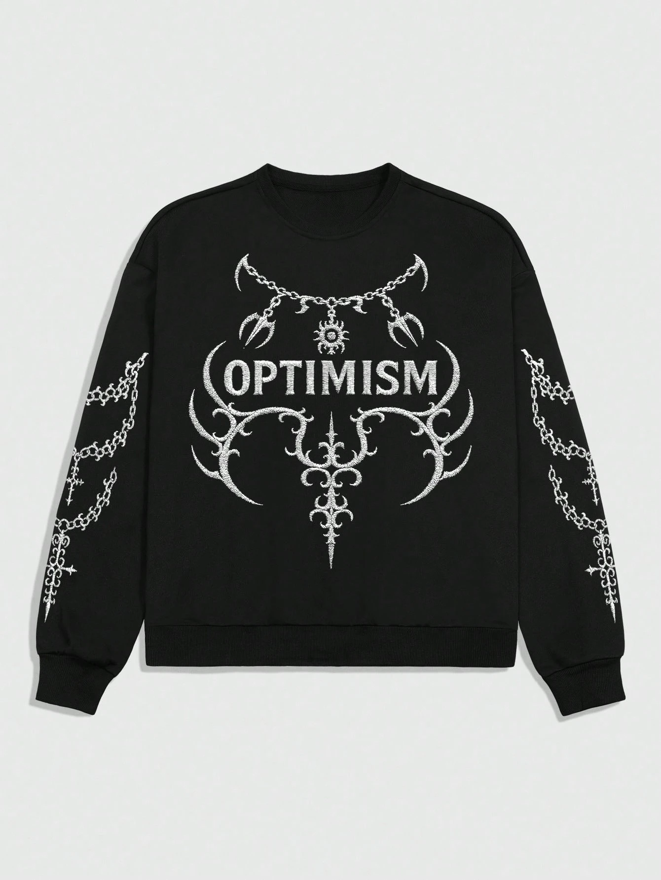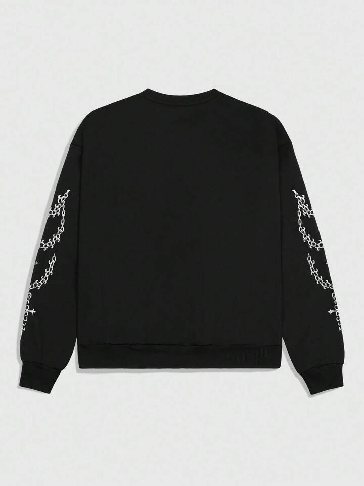 Goth Men's Letter & Graphic Embroidered Crew Neck Long Sleeve Pullover Sweatshirt