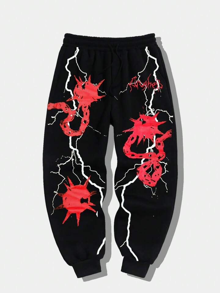 Goth Men's Lightning Bolt & Chain Pattern Drawstring Waist Jogger Pants