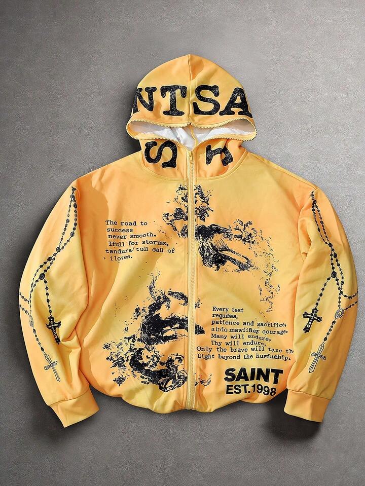 Goth Men's Long Sleeve Hooded Casual Zip-Up Creative Pattern Versatile Sweatshirt Sweatshirt