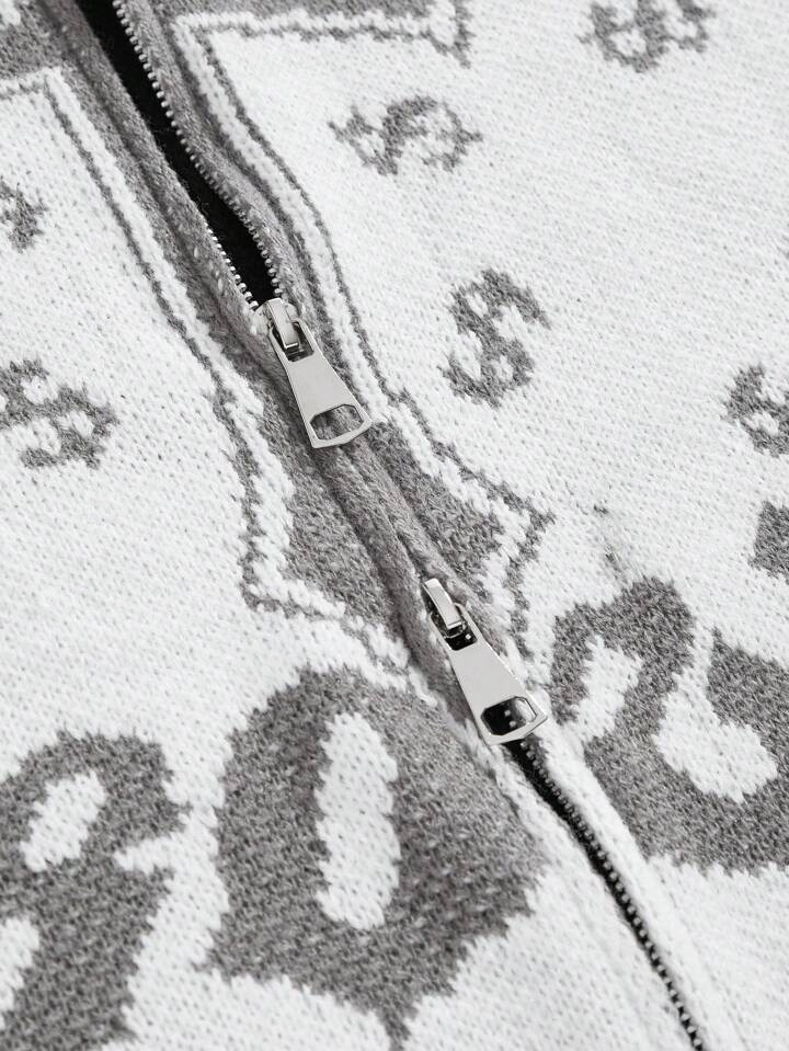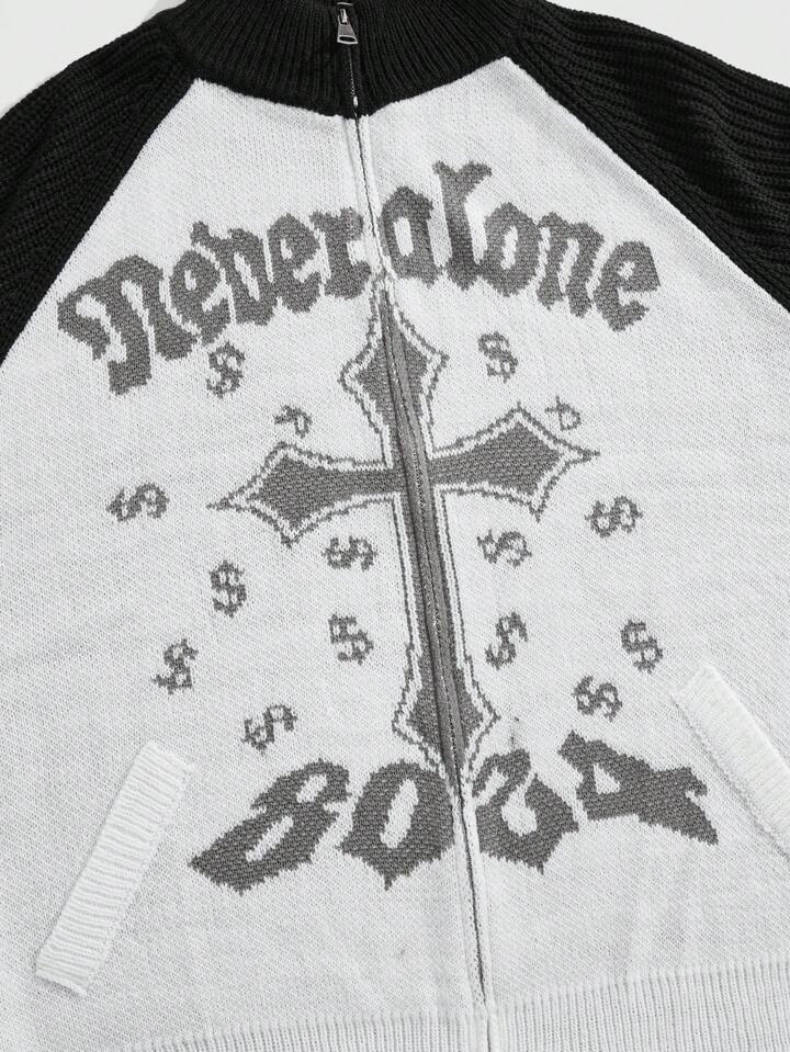 Goth Men's Stand Collar Cross Jacquard Raglan Sleeve Baseball Cardigan