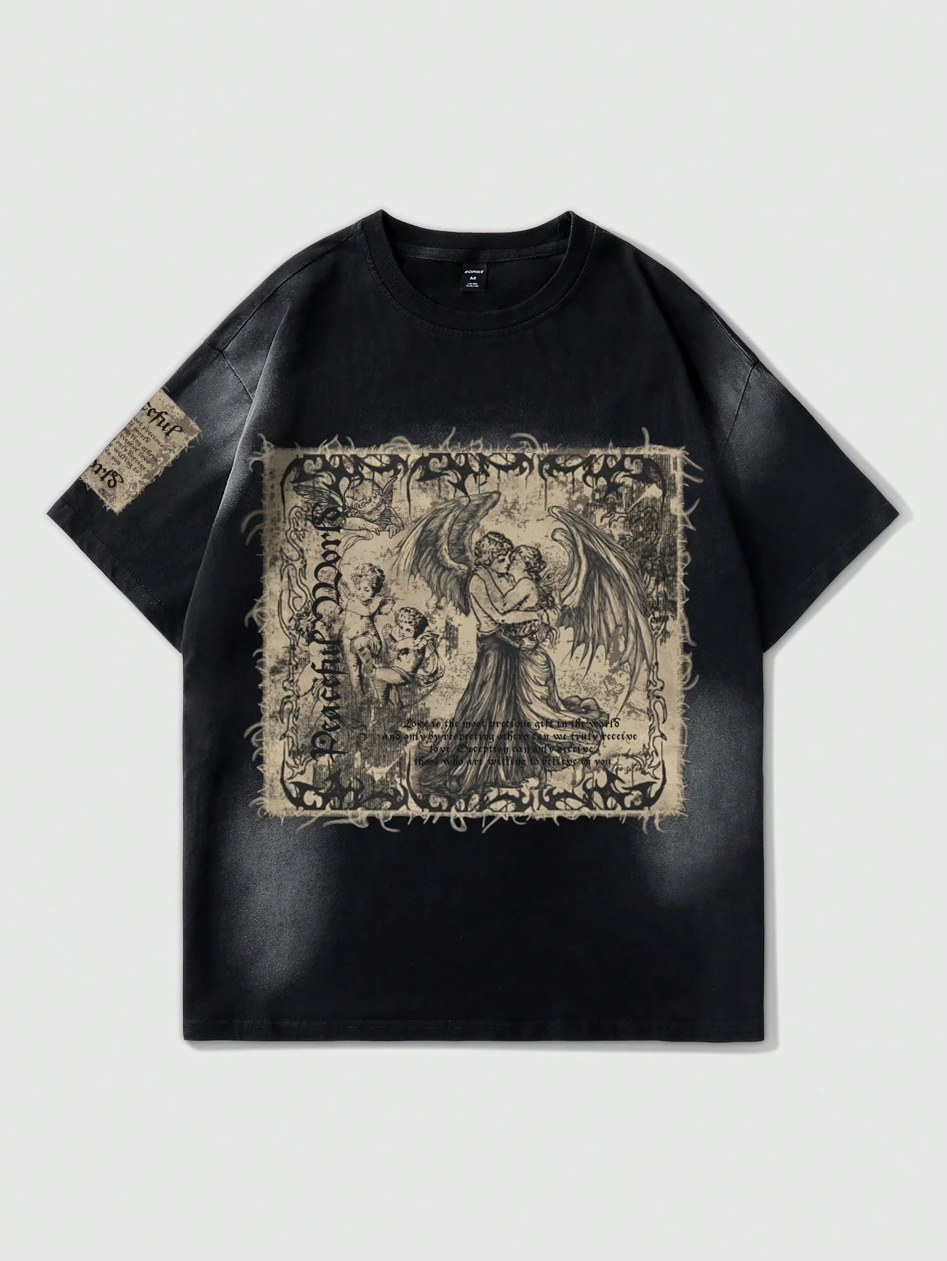 Goth Men's Summer Religious Slogan Angel Print Short Sleeve Casual Fashionable T-Shirt