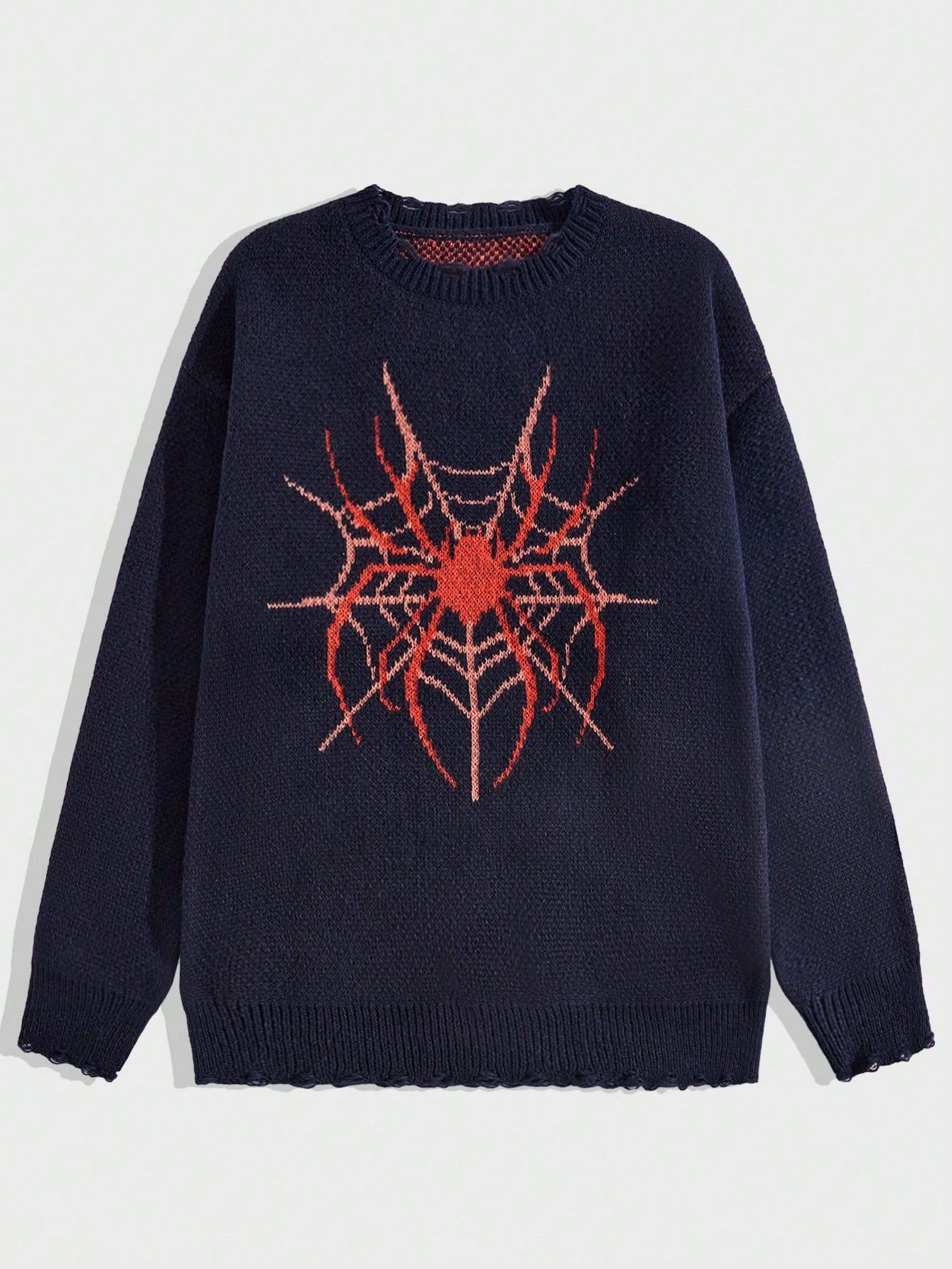 Goth Men's Sweater With Distressed Spider Web Patterned Holes