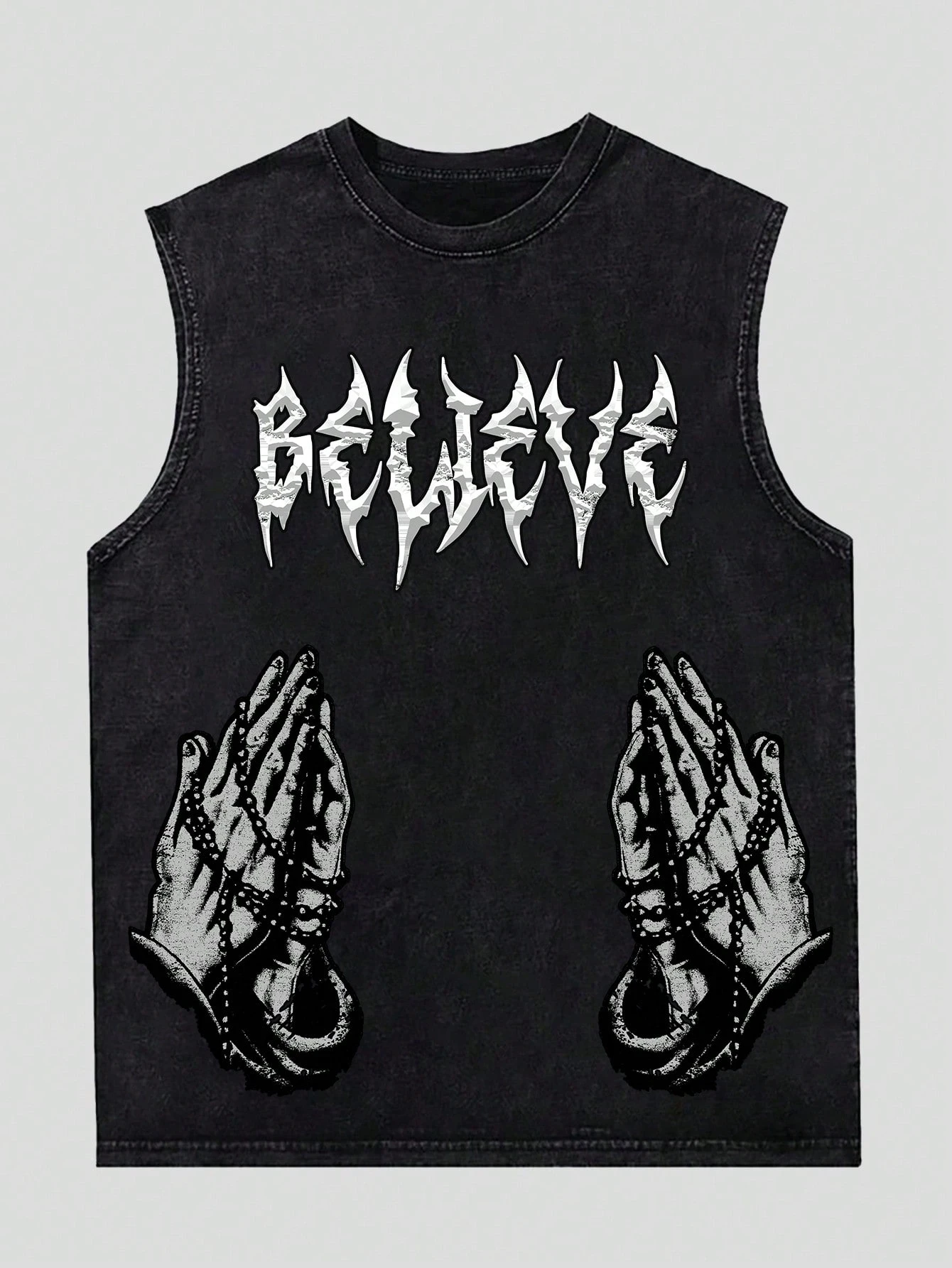 Goth Men's Vintage Washed Loose Fit Tank Top, Streetwear, For Concert