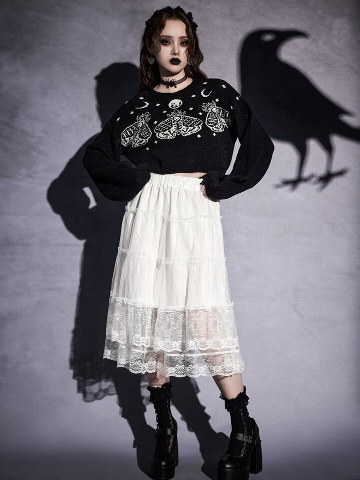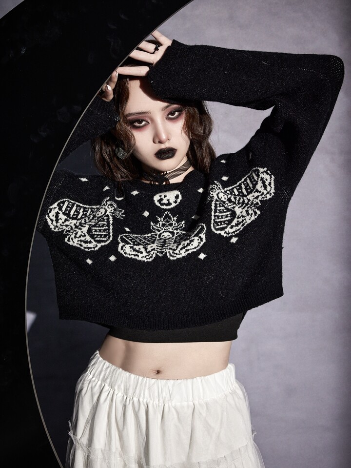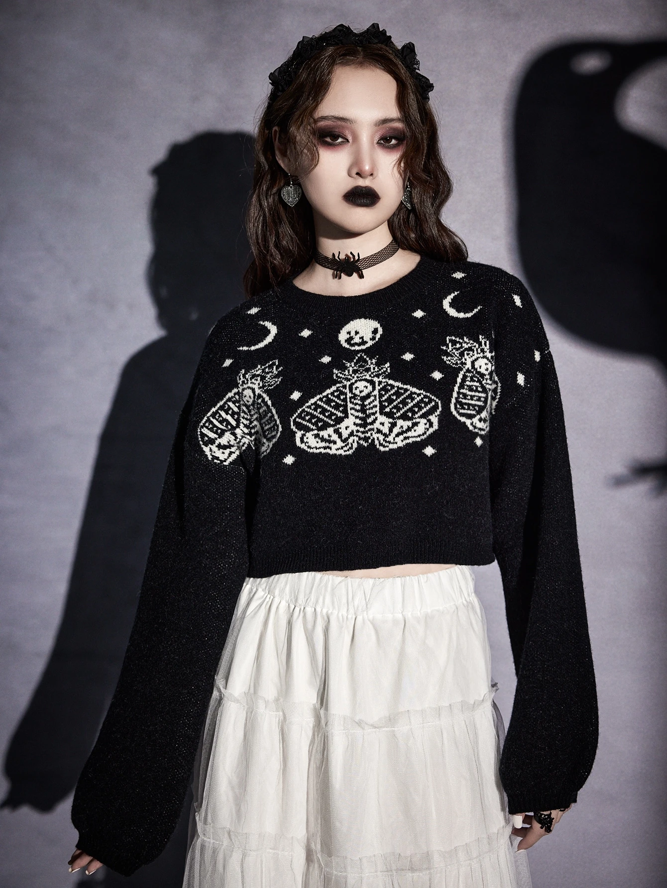Goth Moth & Moon Pattern Drop Shoulder Sweater