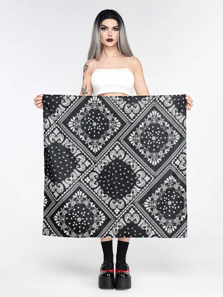 Goth One Women\ Paisley Print Silk Scarf With Multiple Ways To Wear