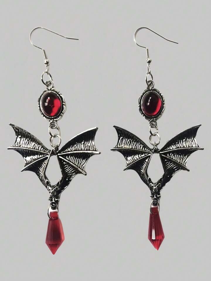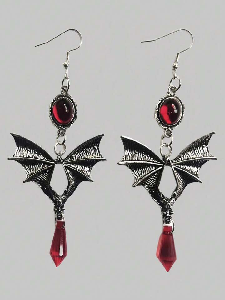 Goth Oval Detail Bat Wings Decor Geometric Bead Drop Earrings