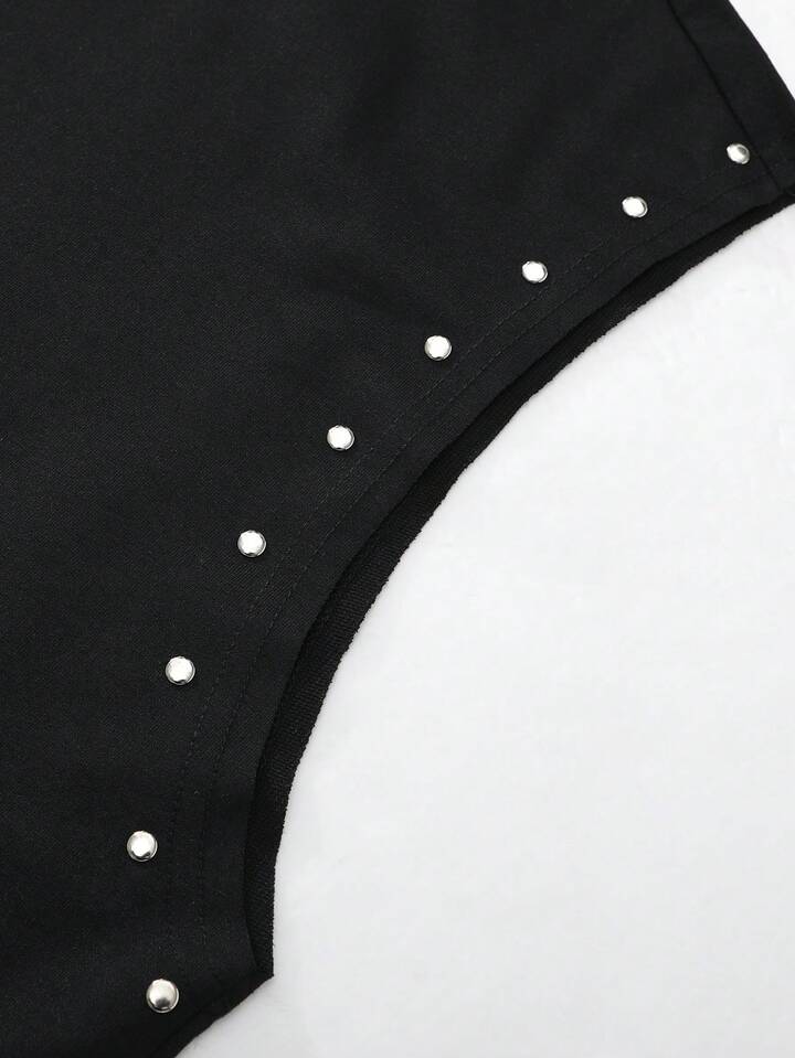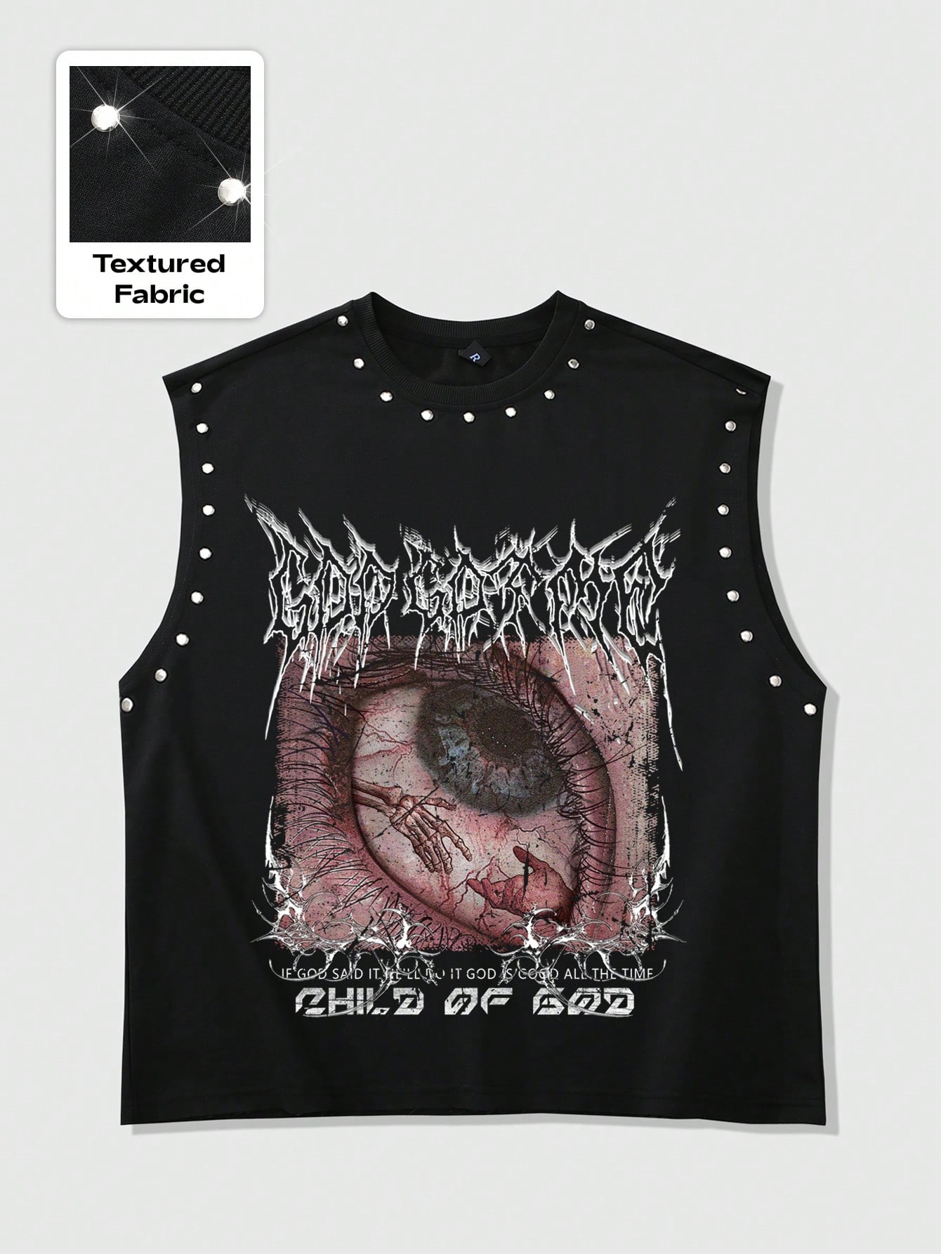 Goth Personalized Street Style Men's Round Neck Tank Top, Copper Trim On Cuffs & Collar, Religious Graphic Print, Perfect For Streetwear, Music Festivals